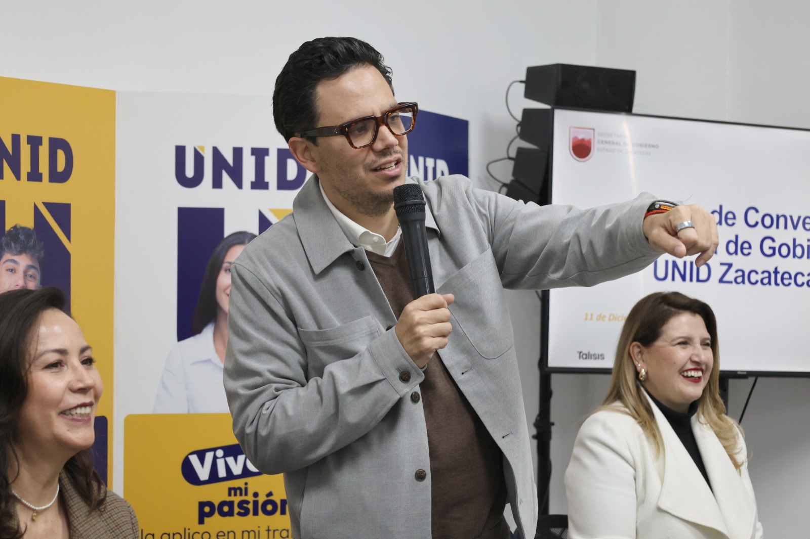 Zacatecas, Zac., 11 de diciembre de 2025.- Con el objetivo de establecer una alianza estratégica que fortalezca la formación académica, profesional y humana del estudiantado, el Gobierno de Zacatecas, a través de la Secretaría General, y la Universidad Interamericana para el Desarrollo (UNID) firmaron un convenio de colaboración, mediante el cual el alumnado de la institución podrá realizar su servicio social y prácticas profesionales en la administración estatal.