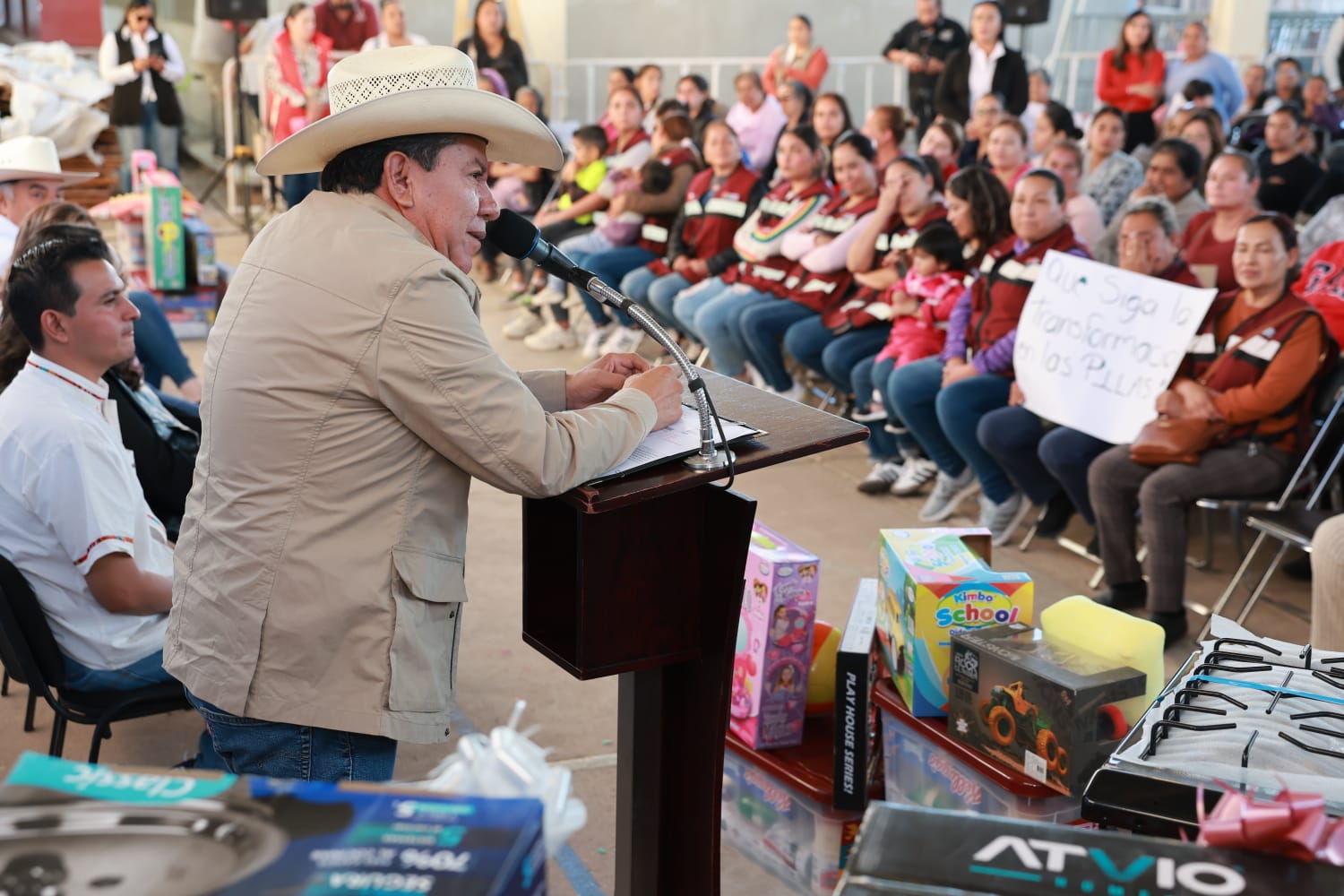 Las Pilas, Morelos, Zac., 18 de noviembre de 2025.- Al encabezar la Posada de la Paz y el Bienestar en la comunidad Las Pilas, en Morelos, el Gobernador David Monreal Ávila reafirmó su compromiso con las familias zacatecanas para fortalecer el programa Corazón Contento en 2026, que será el año del Progreso, a fin de ampliar la cobertura de los municipios a donde llegan las canastas alimentarias y beneficiar a mayor número de familias zacatecanas.