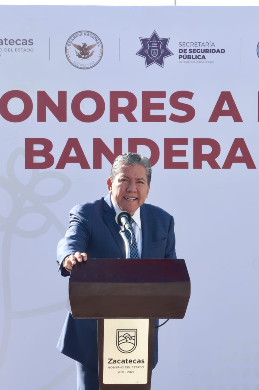 Zacatecas, Zac., 27 de abril de 2026.- En la Ceremonia de Honores a la Bandera, el Gobernador David Monreal Ávila hizo un llamado enérgico a fortalecer las Policías Municipales, a fin de consolidar la paz en la entidad.