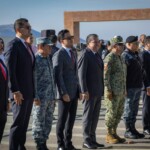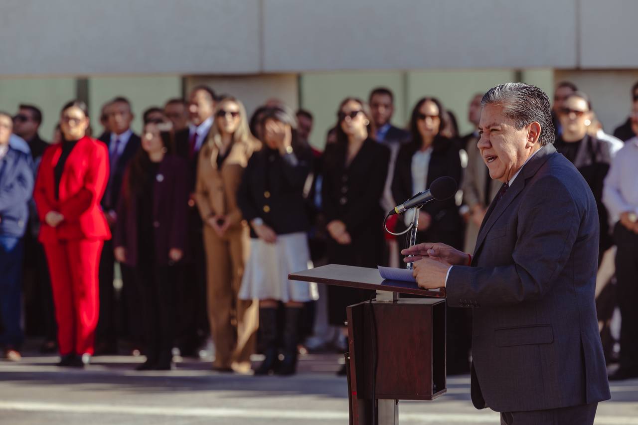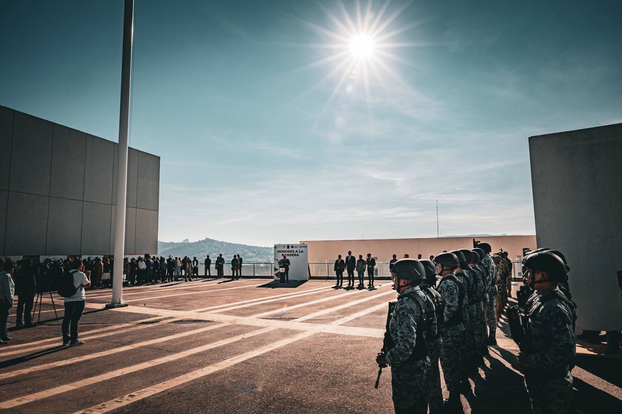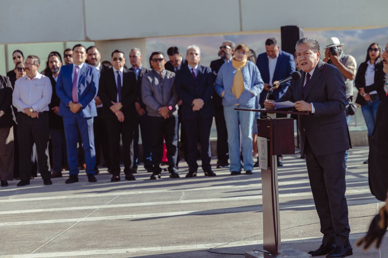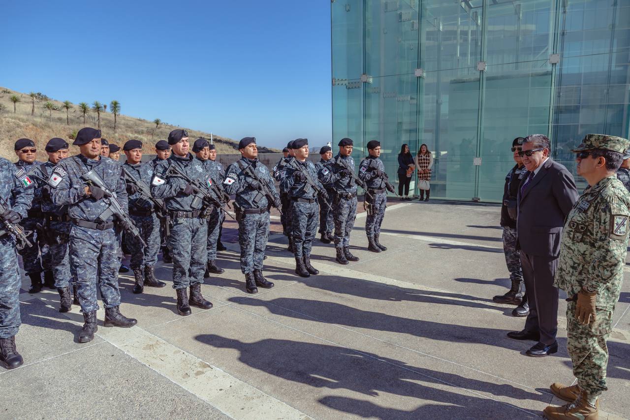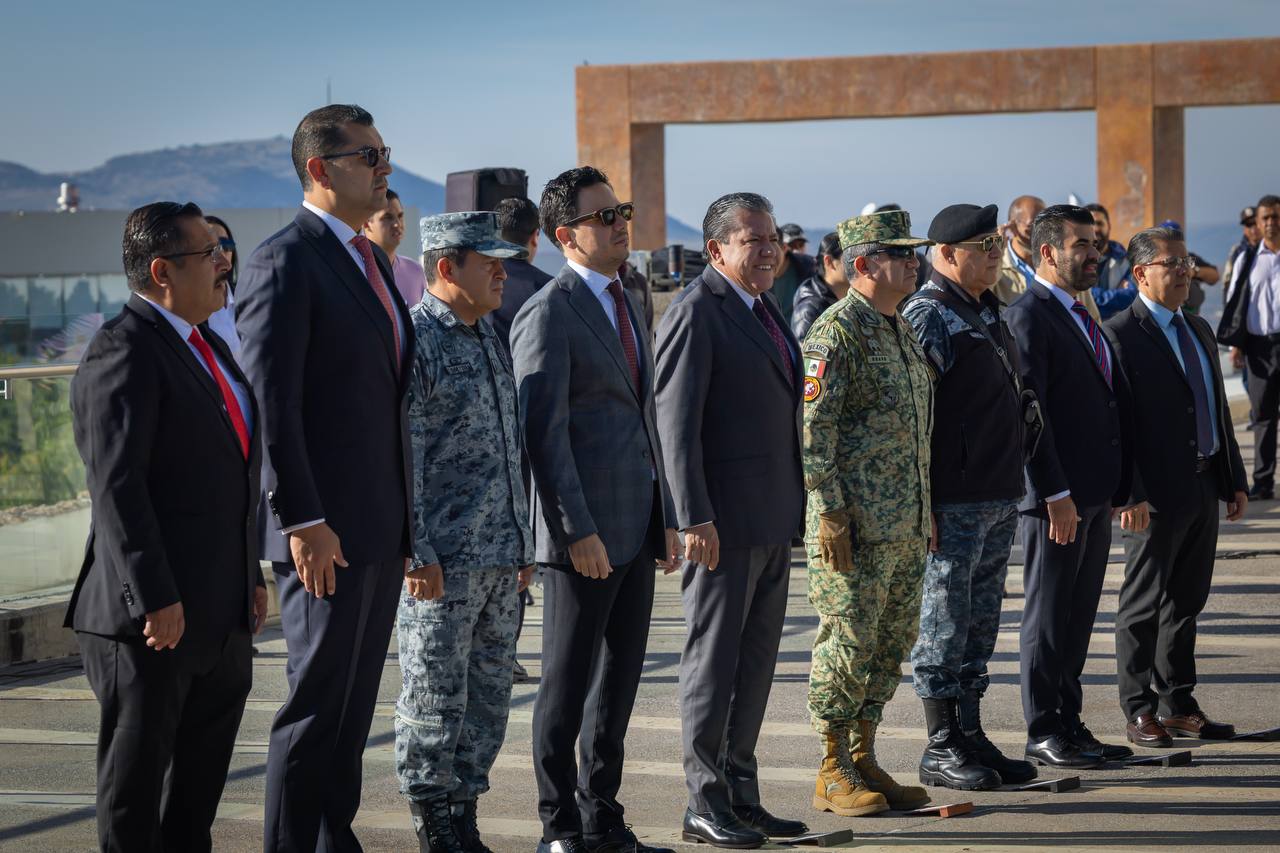 En el presídium también participaron Rodrigo Reyes Mugüerza, secretario general de Gobierno; Arturo Medina Mayoral, secretario de Seguridad Pública; Isaac Bravo López, comandante de la Decimoprimera Zona Militar; Vicente Dimayuga Canales, coordinador estatal de la Guardia Nacional; Cristian Paul Camacho Osnaya, fiscal general de Justicia del Estado; Francisco Esquivel Cruz, delegado de la Fiscalía General de la República; así como Osvaldo Cerrillo Garza, secretario técnico de la Mesa Estatal de Construcción de Paz, entre otros.