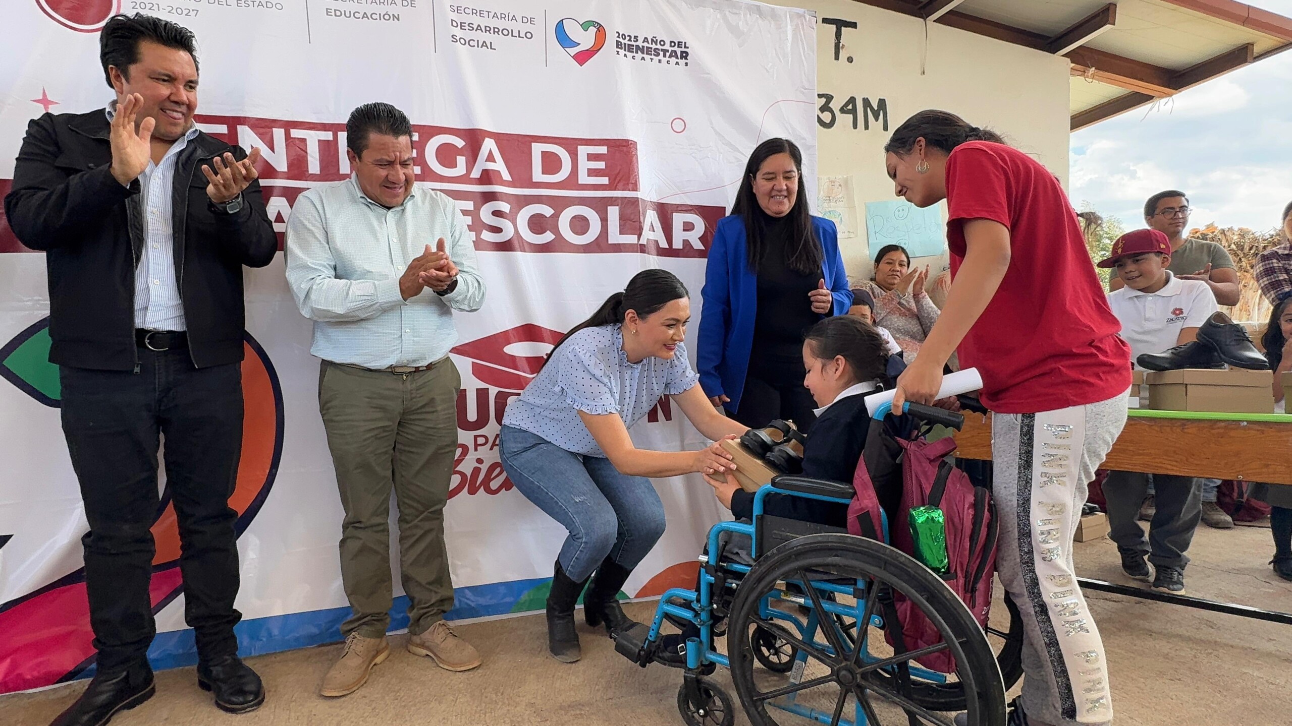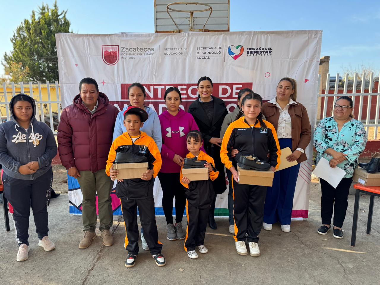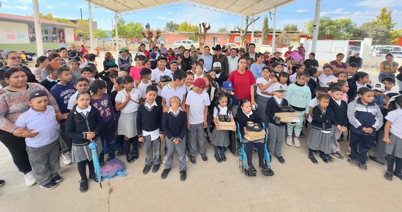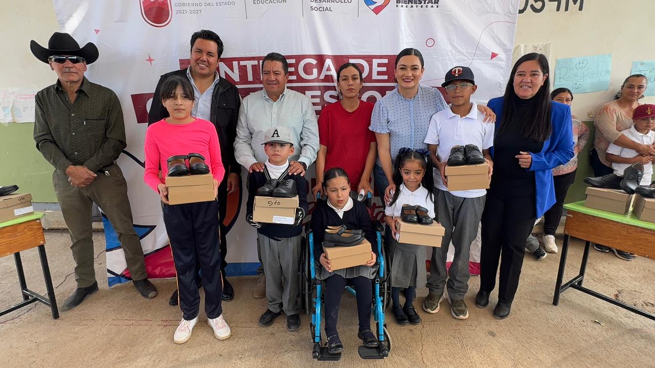 Fresnillo, Zac., 19 de noviembre del 2025.- Con el firme compromiso de fortalecer el desarrollo y el bienestar de niñas y niños de las comunidades rurales, la administración estatal continúa con la entrega de calzado escolar, como parte de la política social impulsada por el Gobernador David Monreal Ávila, quien ha colocado a la educación como un eje fundamental para la transformación y el progreso de Zacatecas.
