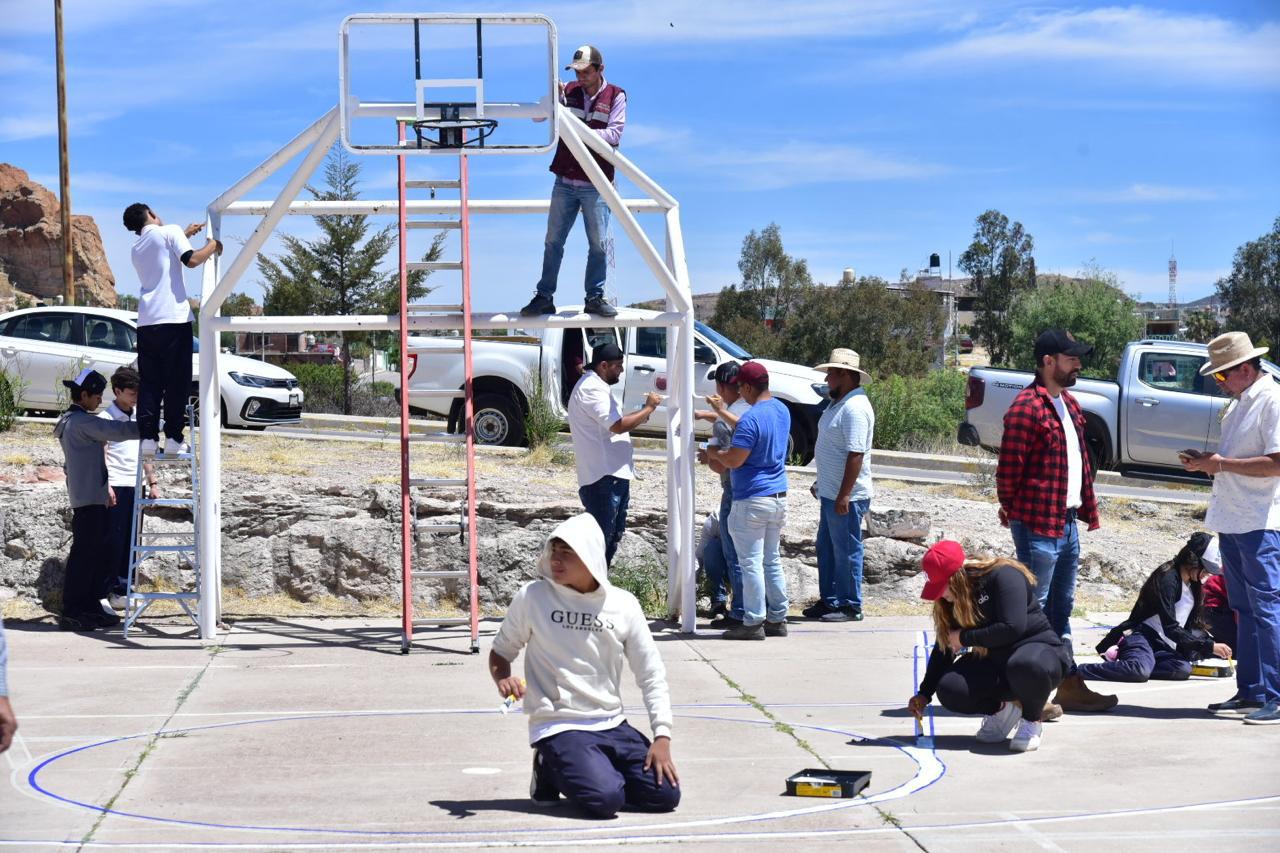 Gobierno de Zacatecas, migrantes y Municipio rehabilitan cancha en La Blanca, Sombrerete
