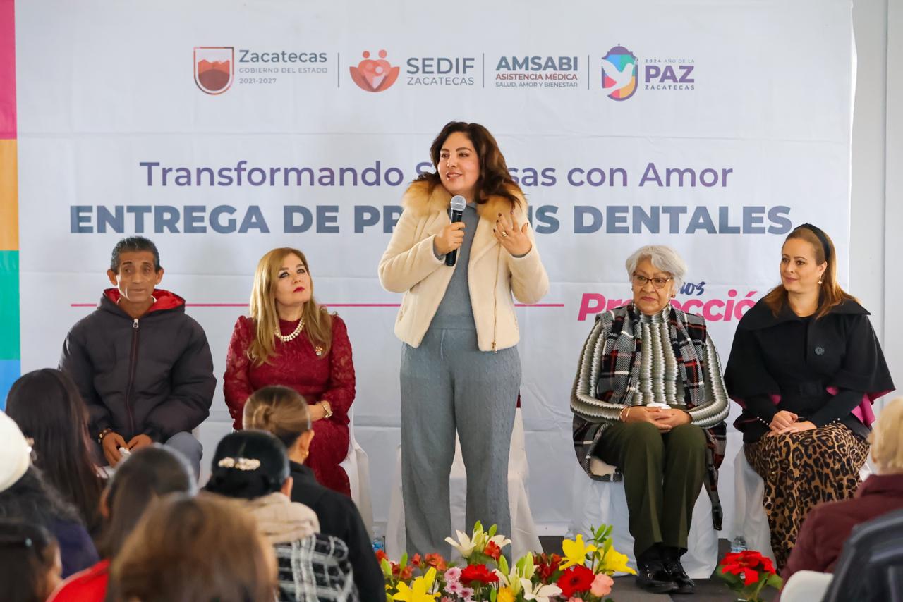 Durante un emotivo evento, la Presidenta Honorífica del Sistema Estatal para el Desarrollo Integral de la Familia (SEDIF), Sara Hernández de Monreal, encabezó la entrega de estos apoyos que incluyen prótesis dentales totales y parciales.