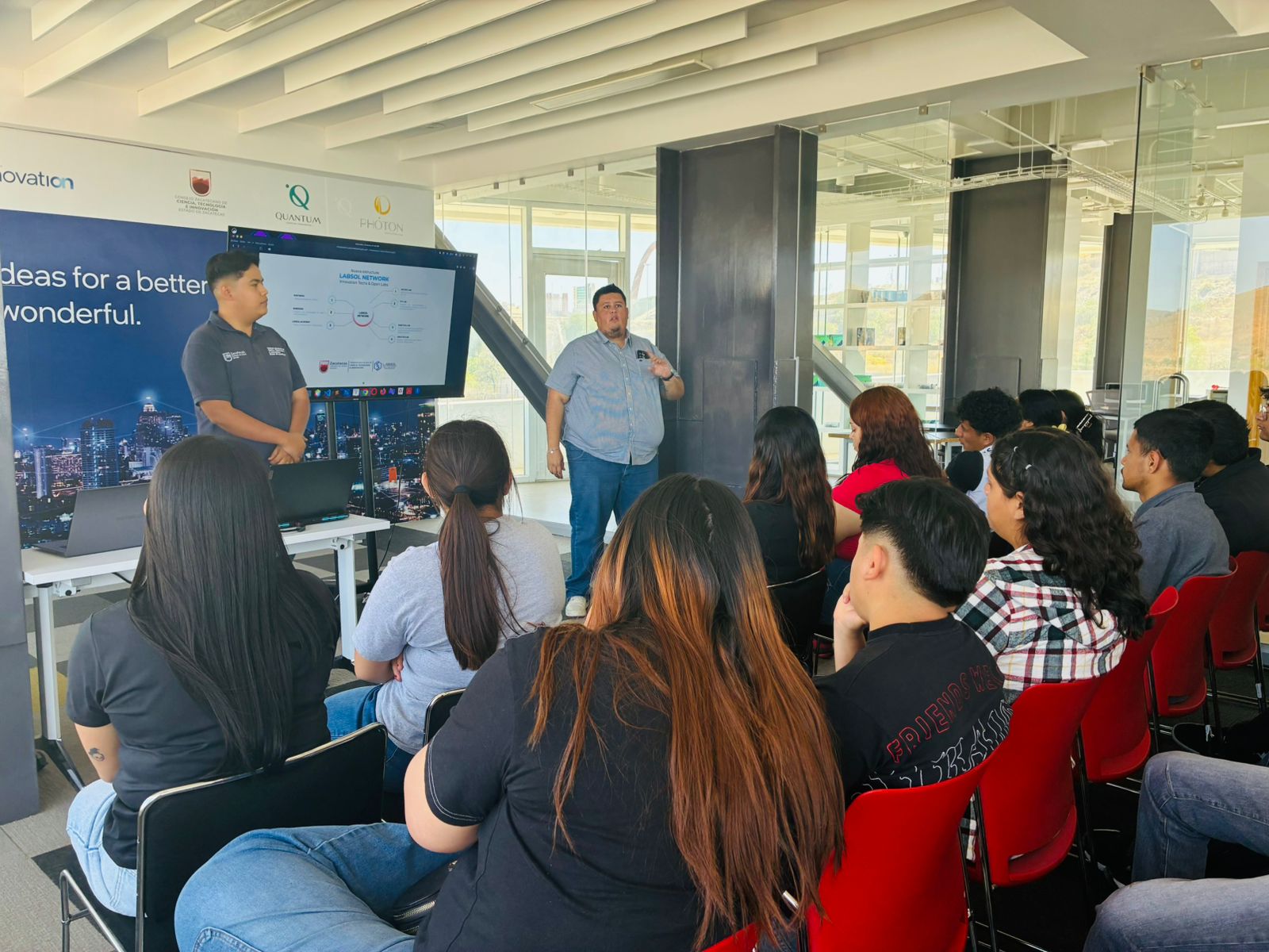 El acercamiento con estudiantes forma parte de la estrategia del Gobernador David Monreal Ávila para mantener contacto permanente con la juventud, tal como en esta ocasión sucedió con el alumnado loretense, que, a invitación del Cozcyt, visitó Quantum para conocer Labsol.