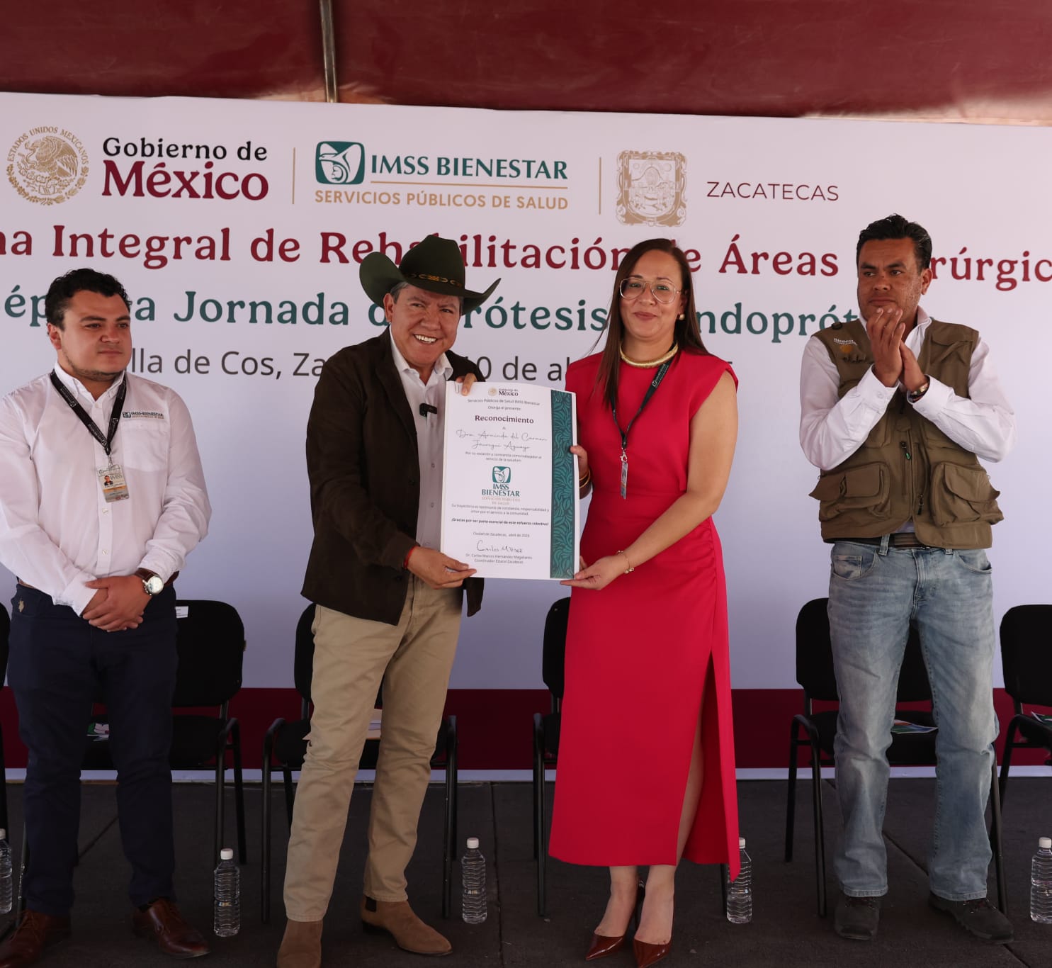 Villa de Cos, Zac., 10 de abril de 2026.- “Estoy muy agradecida con Dios, con ustedes, por esta oportunidad de calidad de vida que nos ofrecen, porque ahora podré disfrutar a mis nietos, podré jugar con ellos. Yo no pensé tener esta oportunidad”, dijo Blanca Rosa Rodríguez Zamora, beneficiaria operada de la rodilla en el Hospital Comunitario de Villa de Cos, lo que evidencia el impacto del Programa Integral de Rehabilitación de Áreas Quirúrgicas y la séptima Jornada de Prótesis y Endoprótesis que encabezó el Gobernador David Monreal Ávila.
