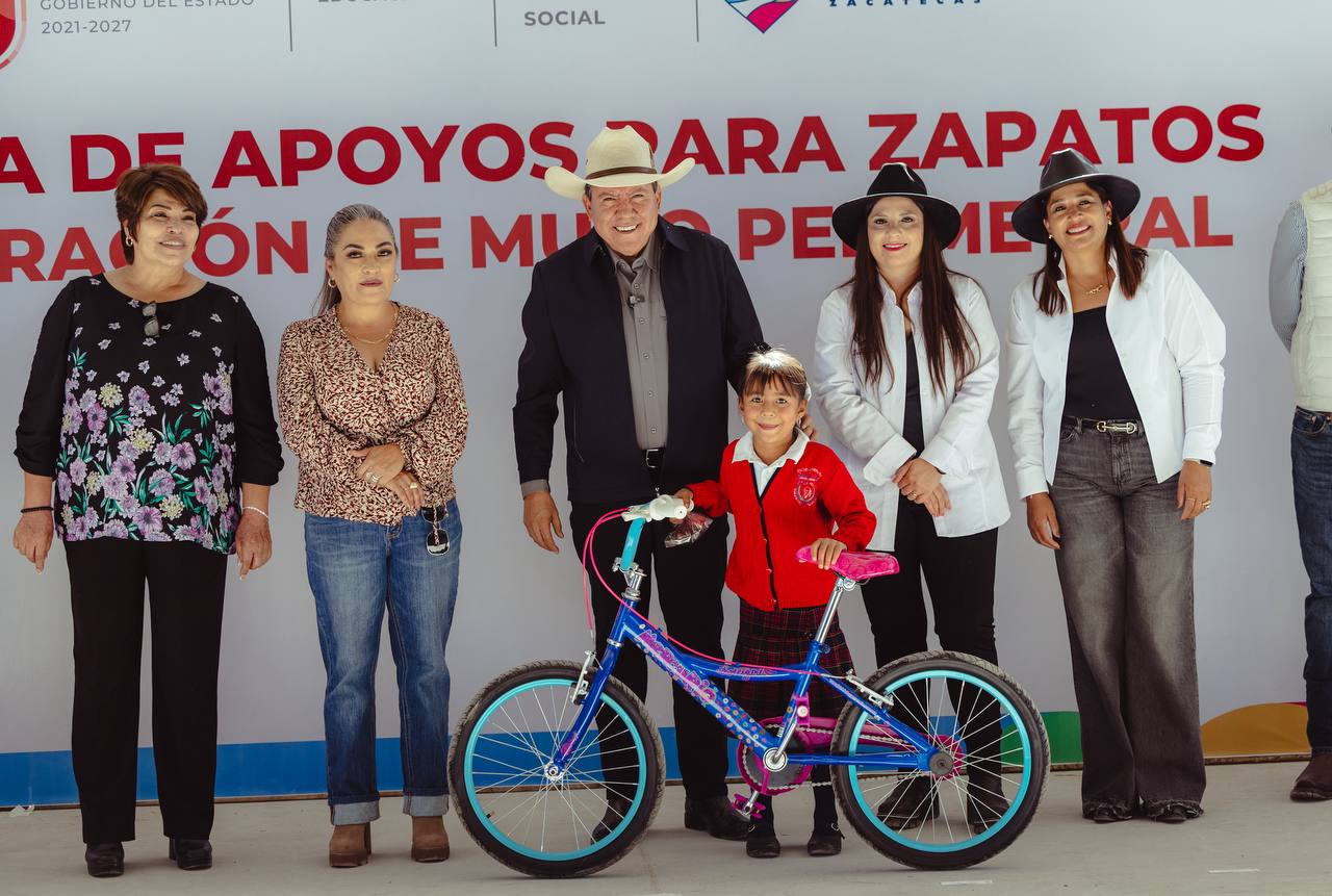 El Gobernador David Monreal Ávila hizo entrega de calzado escolar gratuito como parte del programa piloto que se implementa, a través de la secretaría de Desarrollo Social, en zonas rurales, y reiteró que el próximo año se pretende otorgar este apoyo en efectivo, para que madres y padres de familia puedan adquirir el calzado en el lugar de su preferencia.