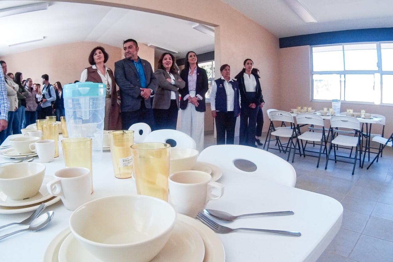 Durante su intervención, destacó que este espacio contribuirá a mejorar la nutrición y el rendimiento académico de las y los jóvenes, al garantizarles acceso a alimentos calientes y balanceados en un entorno digno y adecuado.