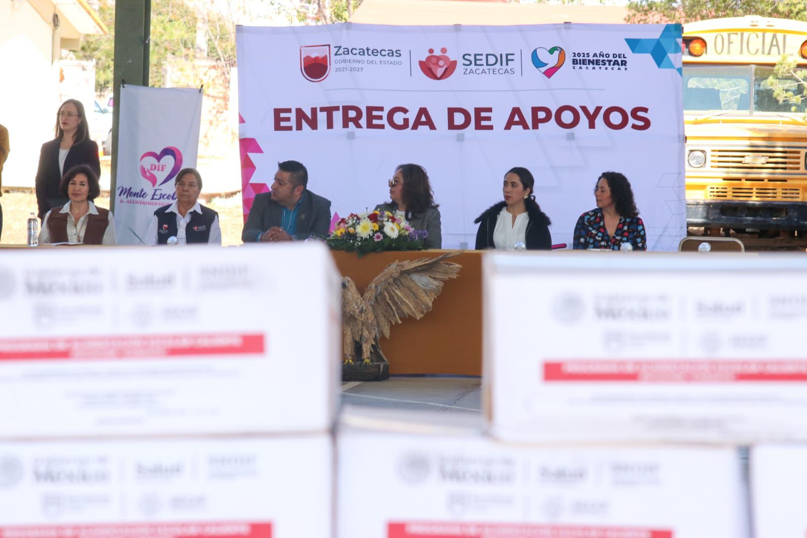 En un evento encabezado por la Presidenta Honorífica del Sistema Estatal para el Desarrollo Integral de la Familia (SEDIF), Sara Hernández de Monreal, se realizó la entrega del equipamiento necesario para poner en marcha el comedor escolar “Nutriendo con Amor y Encanto”, el cual ofrecerá desayunos calientes a la comunidad estudiantil de la Escuela Preparatoria Valentín Gómez Farías.