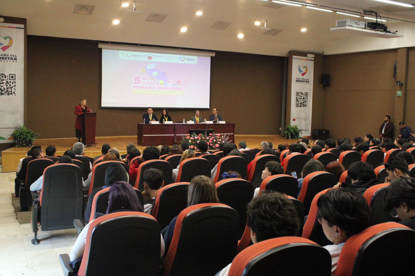 Al dirigirse a estudiantes que acudieron a la inauguración, les recordó que son la razón de ser de esta 5ª Semana, porque representan el presente y el futuro de la ciencia en México y serán los responsables de impulsar soluciones ante los desafíos que enfrenta el planeta, de ahí que los invitó a compartir experiencias, aprender juntos y reconocer el valor del trabajo en equipo.