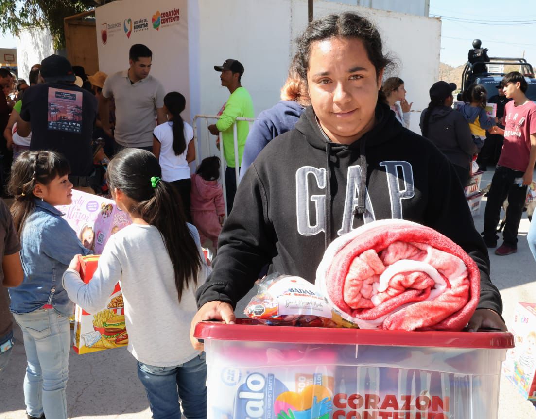 Fresnillo, Zac., 9 de noviembre de 2025.- Con gran anticipación, la Navidad llegó a la comunidad de El Baluarte, del municipio de Fresnillo, a donde el Gobernador David Monreal Ávila llegó con regalos, juguetes para niños y niñas, despensas para las mujeres y cobijas para los hombres.