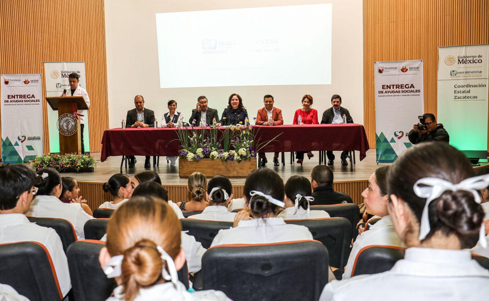 Tuvo participación en el evento Uswaldo Pinedo Barrios, secretario de Salud del Estado; Silvia Aguilar Herrera, titular de enfermería de IMSS Bienestar, en representación del Coordinador Carlos Hernández Magallanes; Mónica Ley García Flores, directora de la Universidad Autónoma de Durango (UAD) Campus Zacatecas; Roberto Córdova Ovalle, subdirector de Gestión y Atención Ciudadana del SEDIF, y Luis Gustavo Montañez Sosa, director del Hospital General de Zacatecas.
