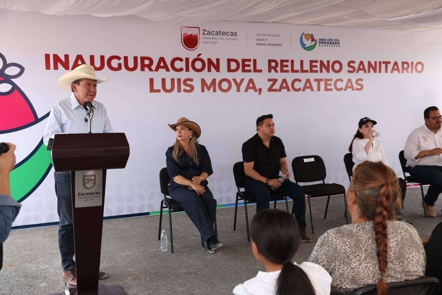 Luis Moya, Zac., 18 de abril de 2026.- En gira de trabajo por el municipio de Luis Moya, el Gobernador David Monreal Ávila inauguró el relleno sanitario más grande del estado, así como dos sistemas de alcantarillado, con el objetivo de garantizar el manejo adecuado de los residuos sólidos urbanos y fortalecer la infraestructura básica, en beneficio de la población.