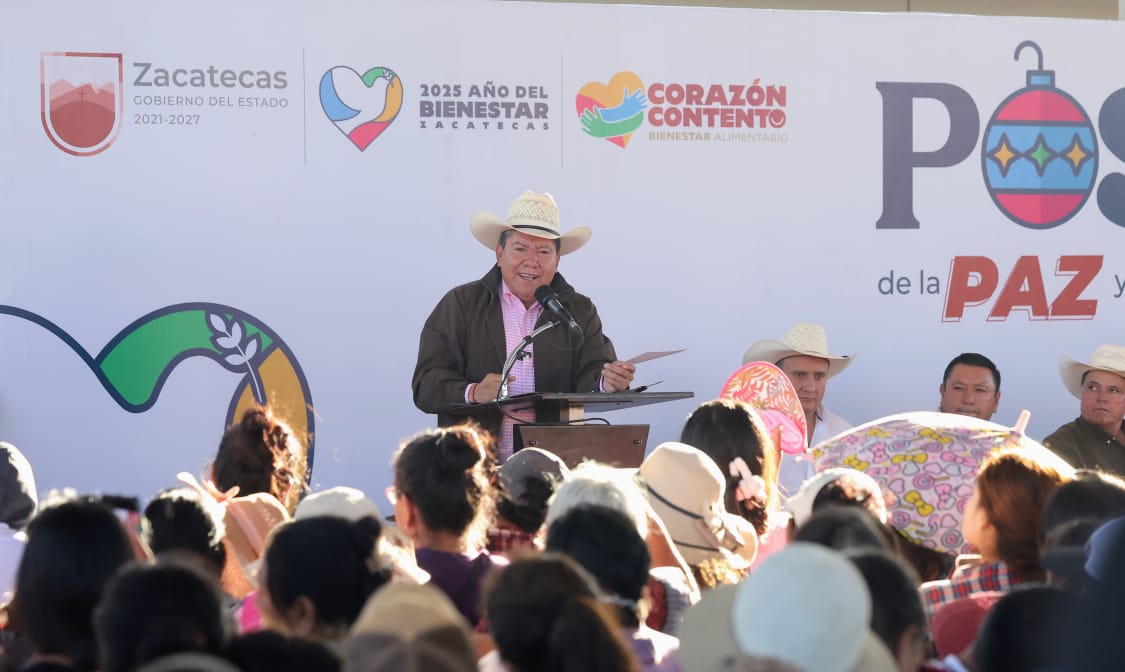 En la comunidad 6 de Enero, en el municipio de Fresnillo, donde encabezó la Posada de La Paz y el Bienestar, el mandatario explicó que esta iniciativa alimentaria tiene carácter universal, pero requiere del compromiso y participación de los gobiernos municipales para ser sostenible; “toda la gente merece la justicia y, para que se pueda realizar, es importante que se entregue alimento de calidad”.