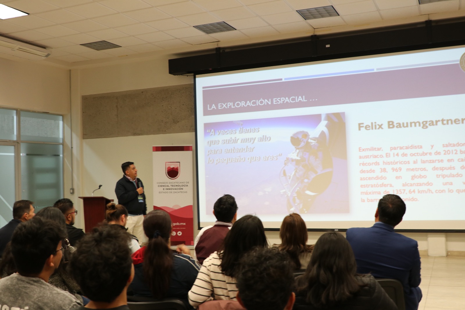 Zacatecas, Zac., 12 de marzo de 2026.- Con el fin de acercar la historia de la tecnología aeroespacial en México a las y los zacatecanos, la administración estatal, a través del Centro Interactivo de Ciencia y Tecnología Zigzag, y el Instituto Politécnico Nacional (IPN) colaboraron para traer la exposición itinerante “El sueño a la mexicana de conquistar el Espacio”, así como el ciclo de conferencias “Rumbo a las Estrellas: Ciencia e Innovación Espacial Mexicana”.