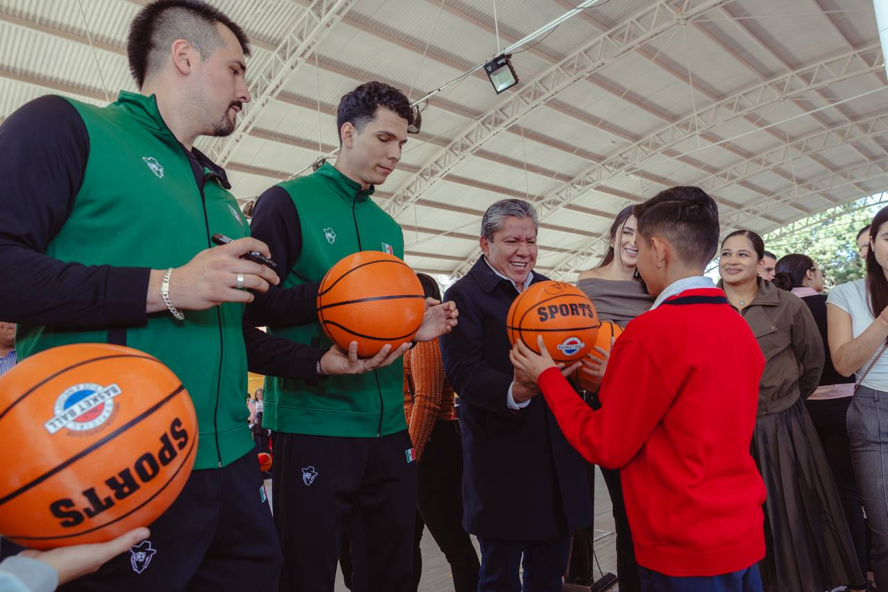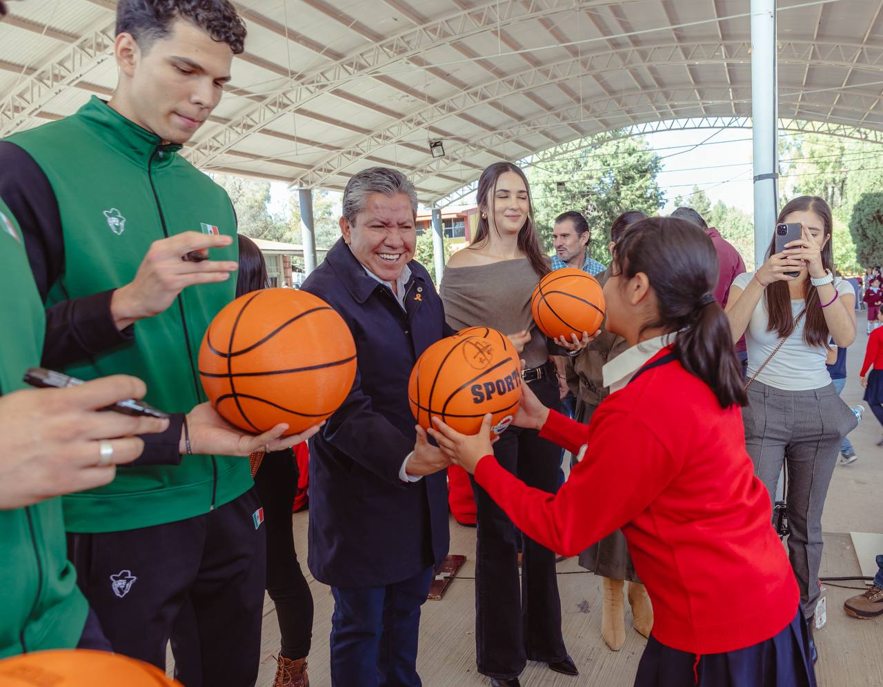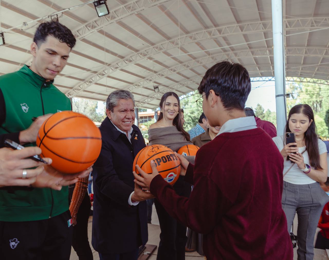 Durante este encuentro con los 278 estudiantes del plantel, el mandatario se hizo acompañar de Jorge Camacho y Brayan Martínez, jugadores profesionales de la Selección Mexicana de Basquetbol que el próximo fin de semana serán parte del partido eliminatorio rumbo al mundial de Baloncesto entre México y República Dominicana, que se jugará en Zacatecas.
