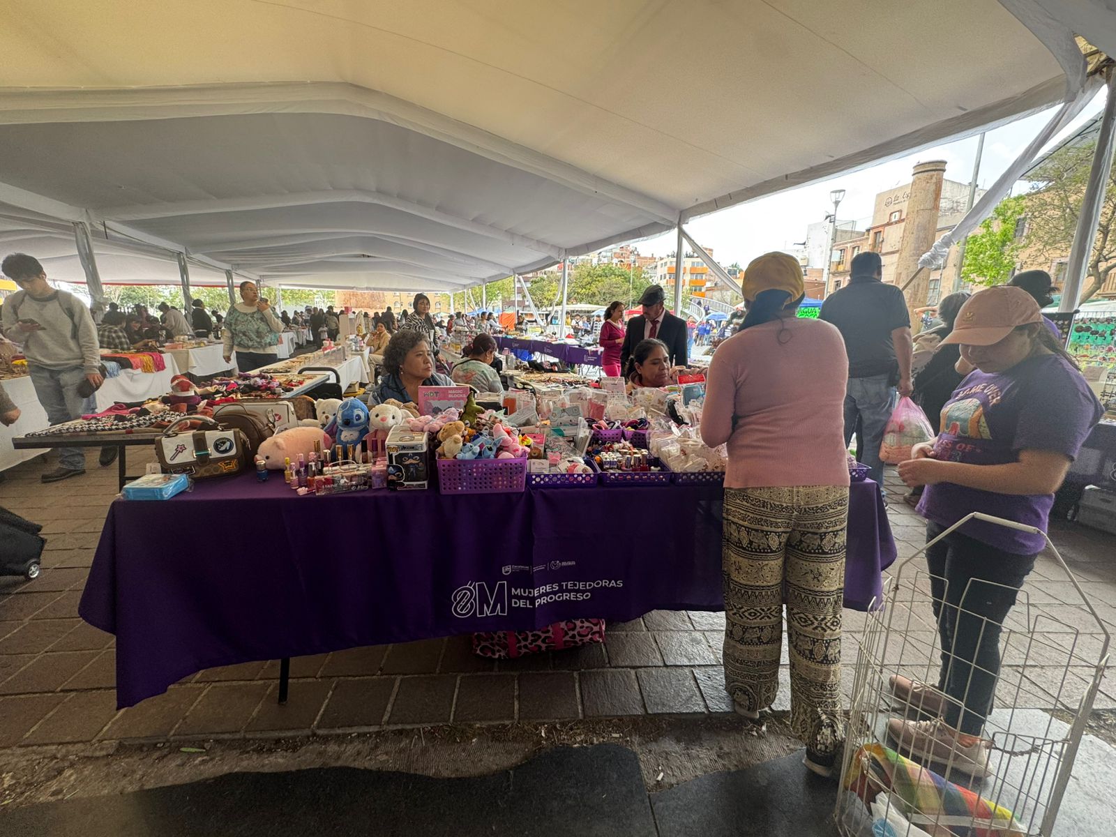 Zacatecas, Zac., 13 de marzo de 2026.- En el marco de las actividades conmemorativas por el Día Internacional de la Mujer, el Gobierno de Zacatecas lleva a cabo la Feria “Mujeres Tejedoras del Progreso” en la Plaza Bicentenario, con la participación de 200 emprendedoras de distintas regiones del estado.