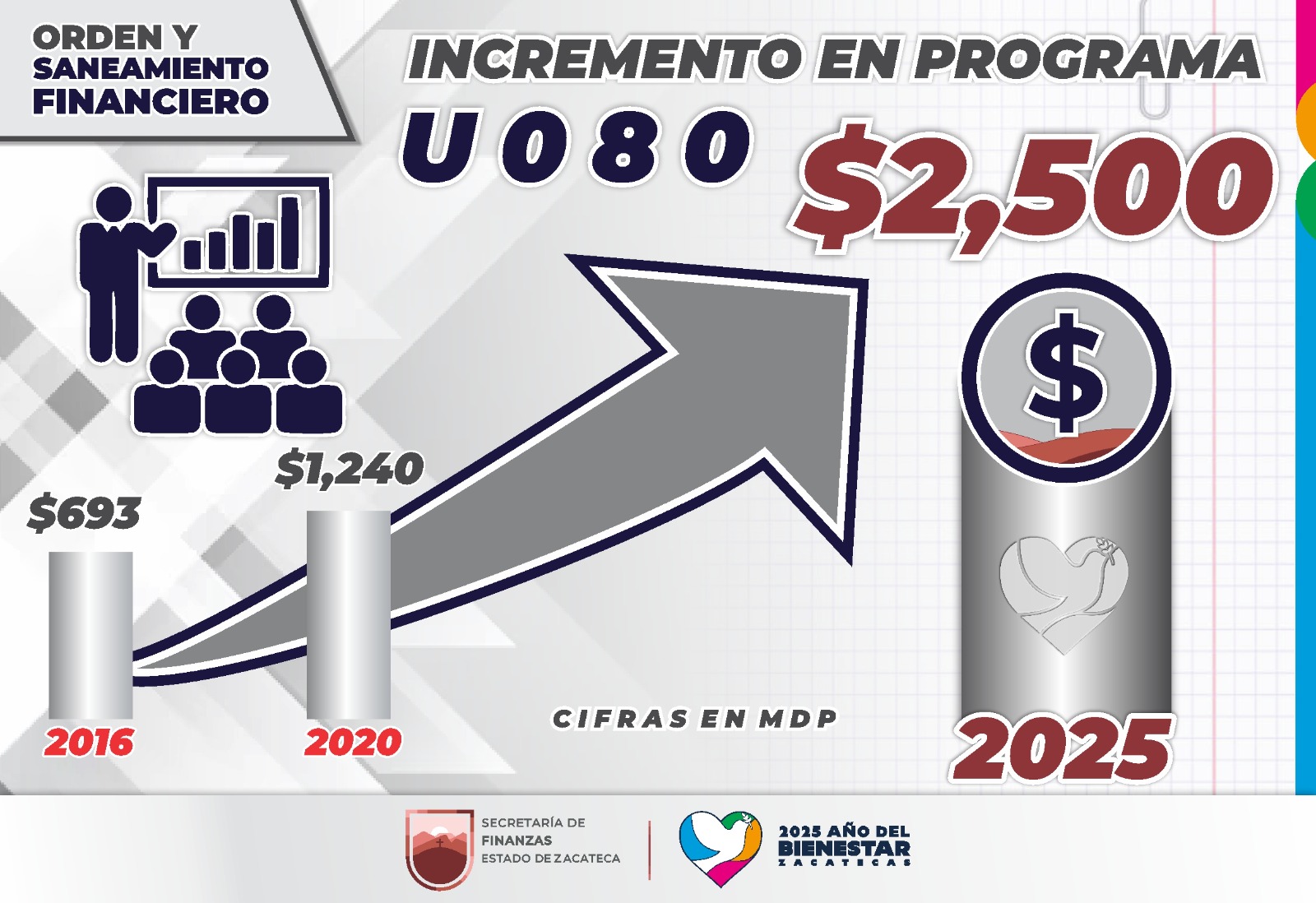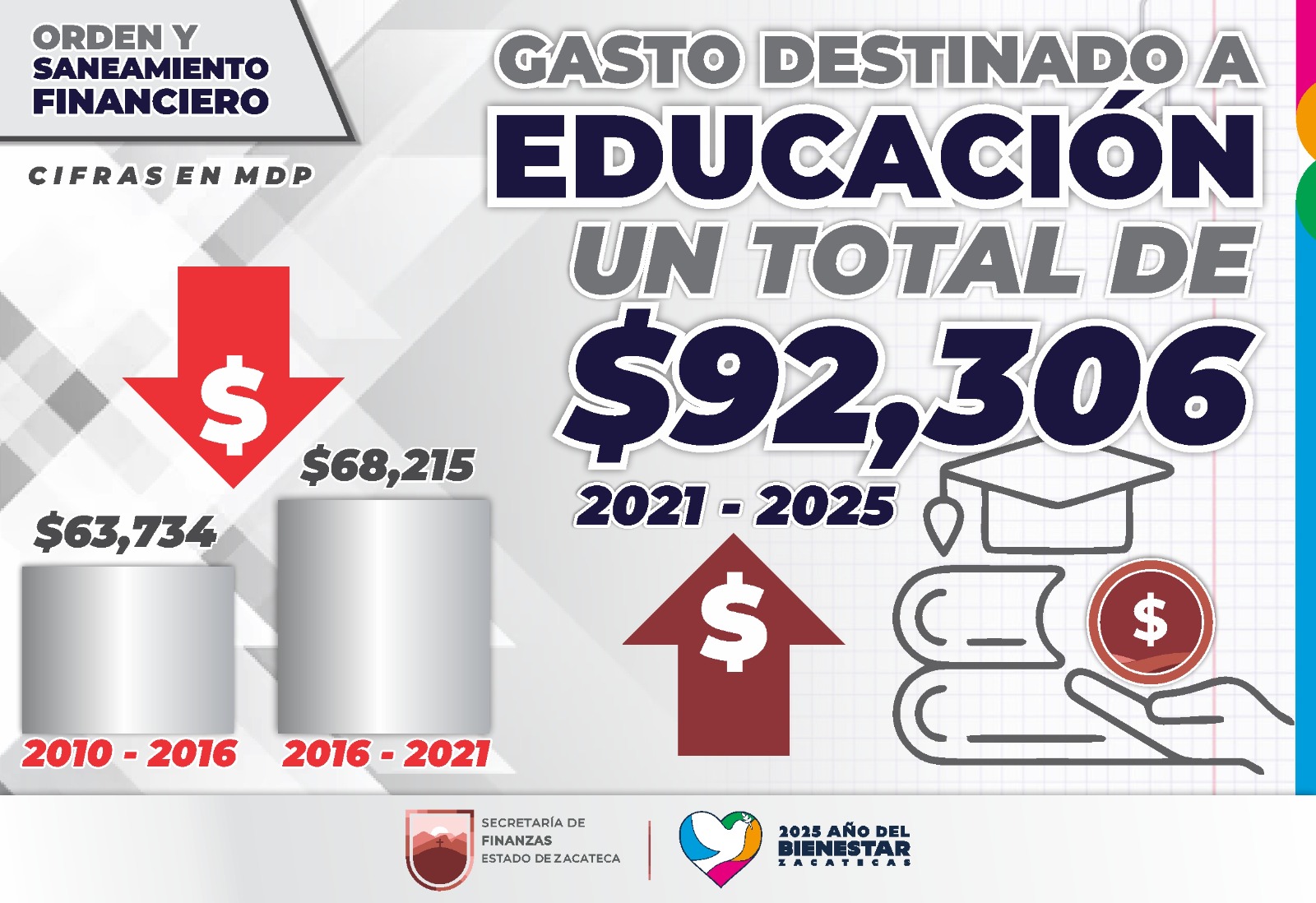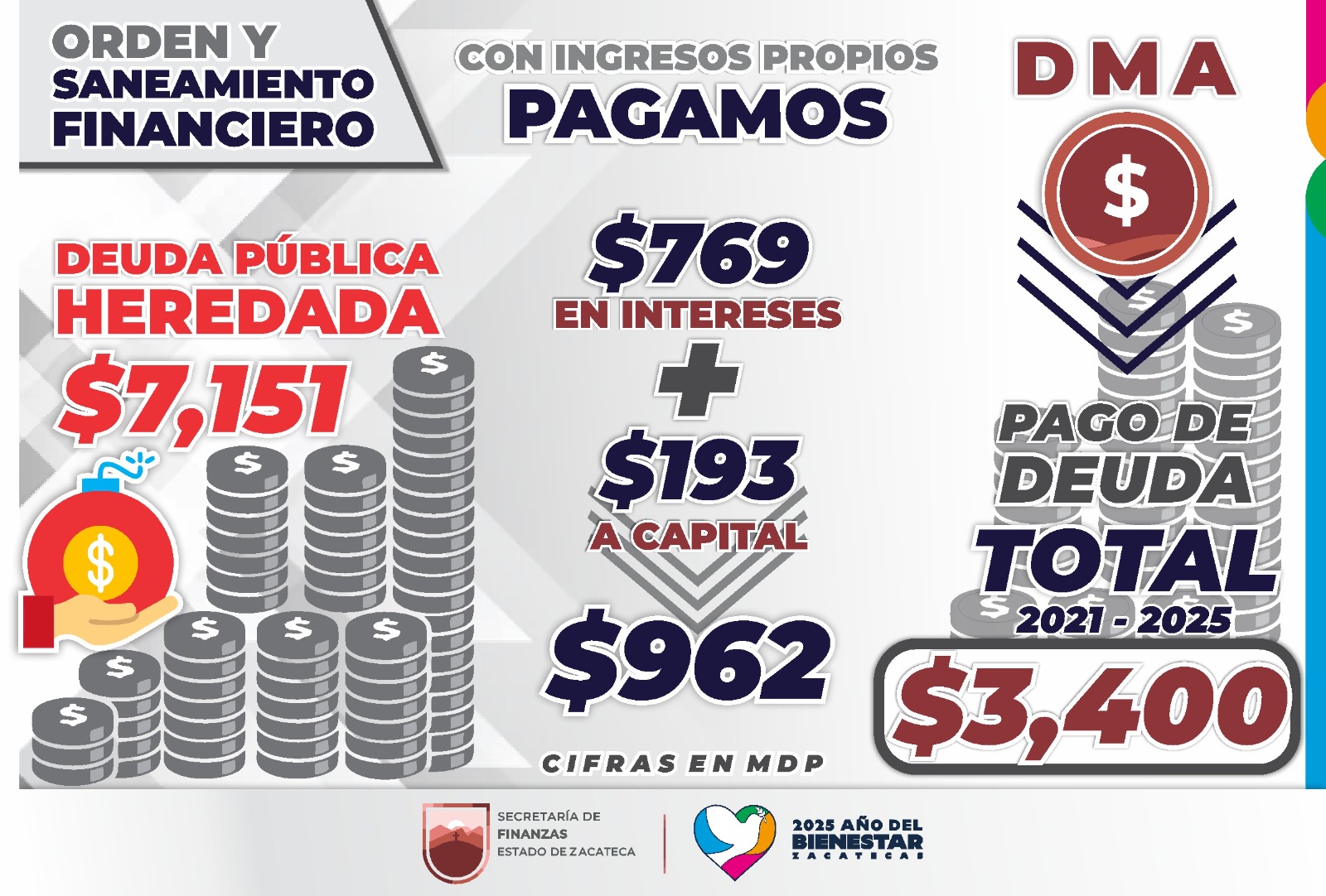• Gracias a la política de disciplina financiera del Gobernador David Monreal Ávila, se han abonado 3 mil 400 millones de pesos a la deuda pública