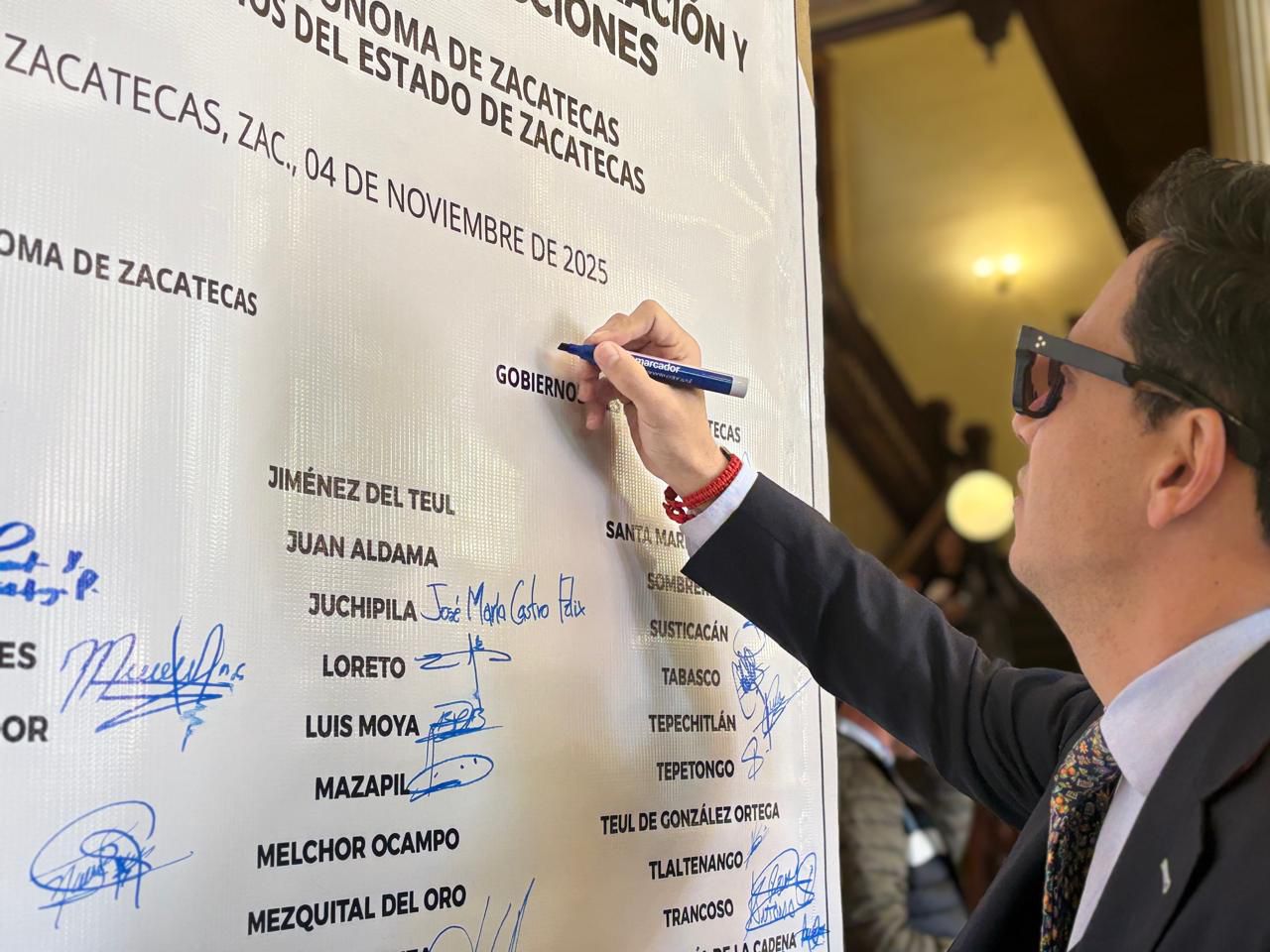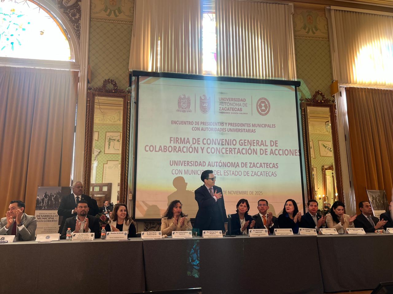 - Con la representación del Gobernador David Monreal Ávila, atestiguó la firma de convenio de colaboración y concertación de acciones entre la Universidad Autónoma de Zacatecas y los municipios de la entidad