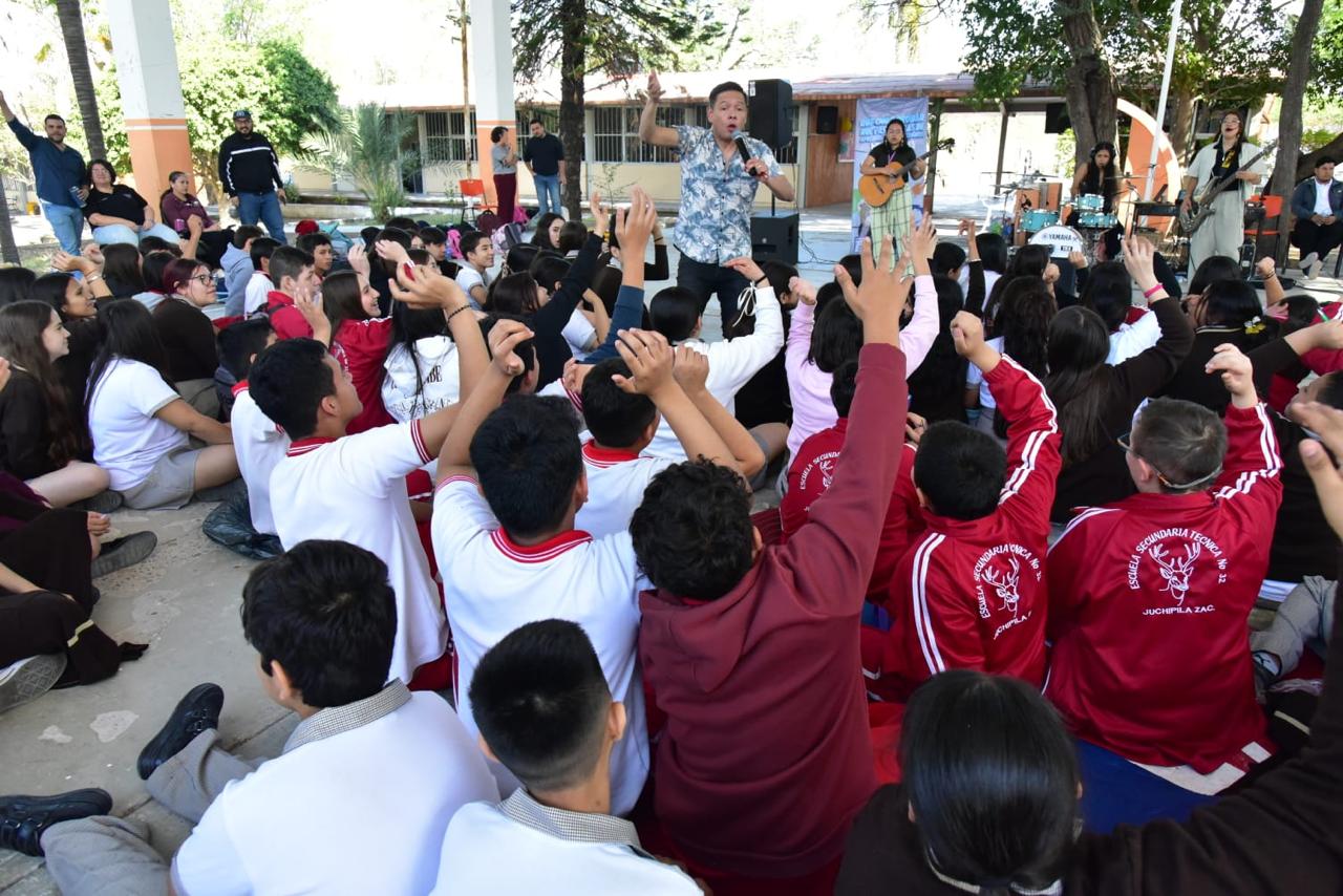 En cumplimiento con el compromiso de brindar la atención oportuna al sector joven de la sociedad, como ha sido prioridad para el Gobernador David Monreal Ávila, se realizó una serie de conferencias-conciertos, en diversas instituciones educativas de algunos municipios, donde se captó la atención e interés de juventudes de las distintas regiones de la entidad.