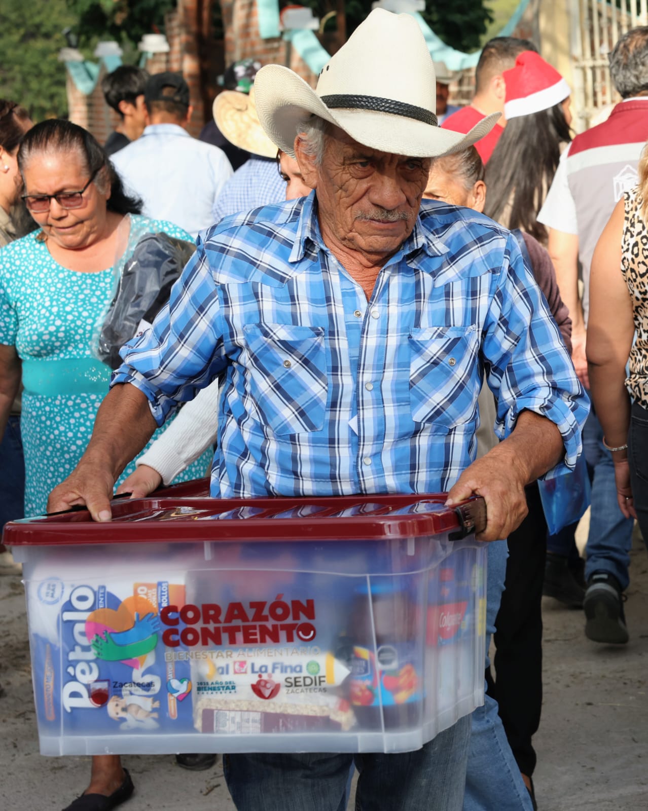 Previo a la entrega de 230 canastas alimentarias y regalos para más de 250 niñas, niños y adolescentes de las comunidades San Isidro, Villarreales, El Fresno, San Antonio y Los Sedano, el mandatario destacó el éxito del Programa Corazón Contento que, dijo, mantiene una alta demanda, pues en la mayoría de los municipios participantes, las familias solicitan más apoyo alimentario.
