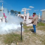 Zacatecas, Zac., 28 de octubre de 2025.- Por instrucción del Gobernador David Monreal Ávila, ante la temporada de actividades por Día de Muertos, en la que se incrementa considerablemente la afluencia de personas que visitan los cementerios, personal del área de Vectores de la Secretaría de Salud de Zacatecas (SSZ) realiza labores, en dichos lugares, para prevenir enfermedades que se transmiten por mosquitos, entre las que se encuentra el Dengue.