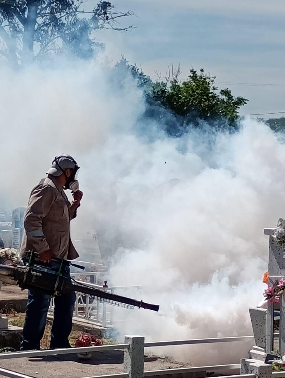 Zacatecas, Zac., 28 de octubre de 2025.- Por instrucción del Gobernador David Monreal Ávila, ante la temporada de actividades por Día de Muertos, en la que se incrementa considerablemente la afluencia de personas que visitan los cementerios, personal del área de Vectores de la Secretaría de Salud de Zacatecas (SSZ) realiza labores, en dichos lugares, para prevenir enfermedades que se transmiten por mosquitos, entre las que se encuentra el Dengue.