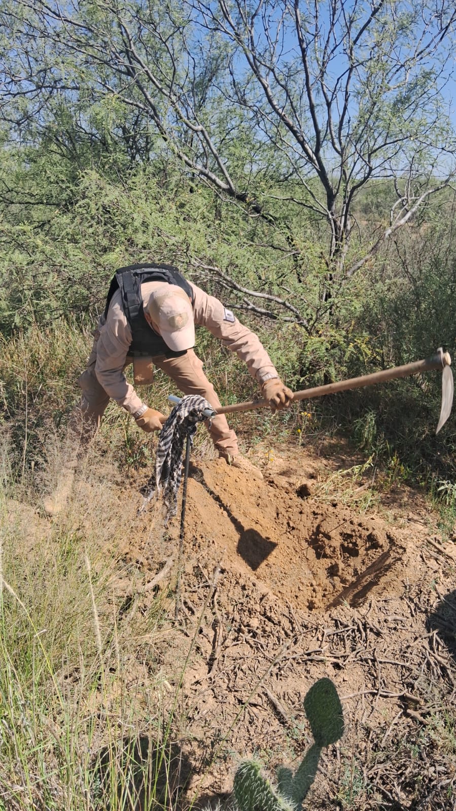El personal de la Comisión Local de Búsqueda de Personas Desaparecidas y la Fiscalía Especializada en Atención al Delito de Desaparición Forzada y Desaparición Cometida por Particulares llevó a cabo la prospección con el apoyo de tecnología y herramientas de mano.