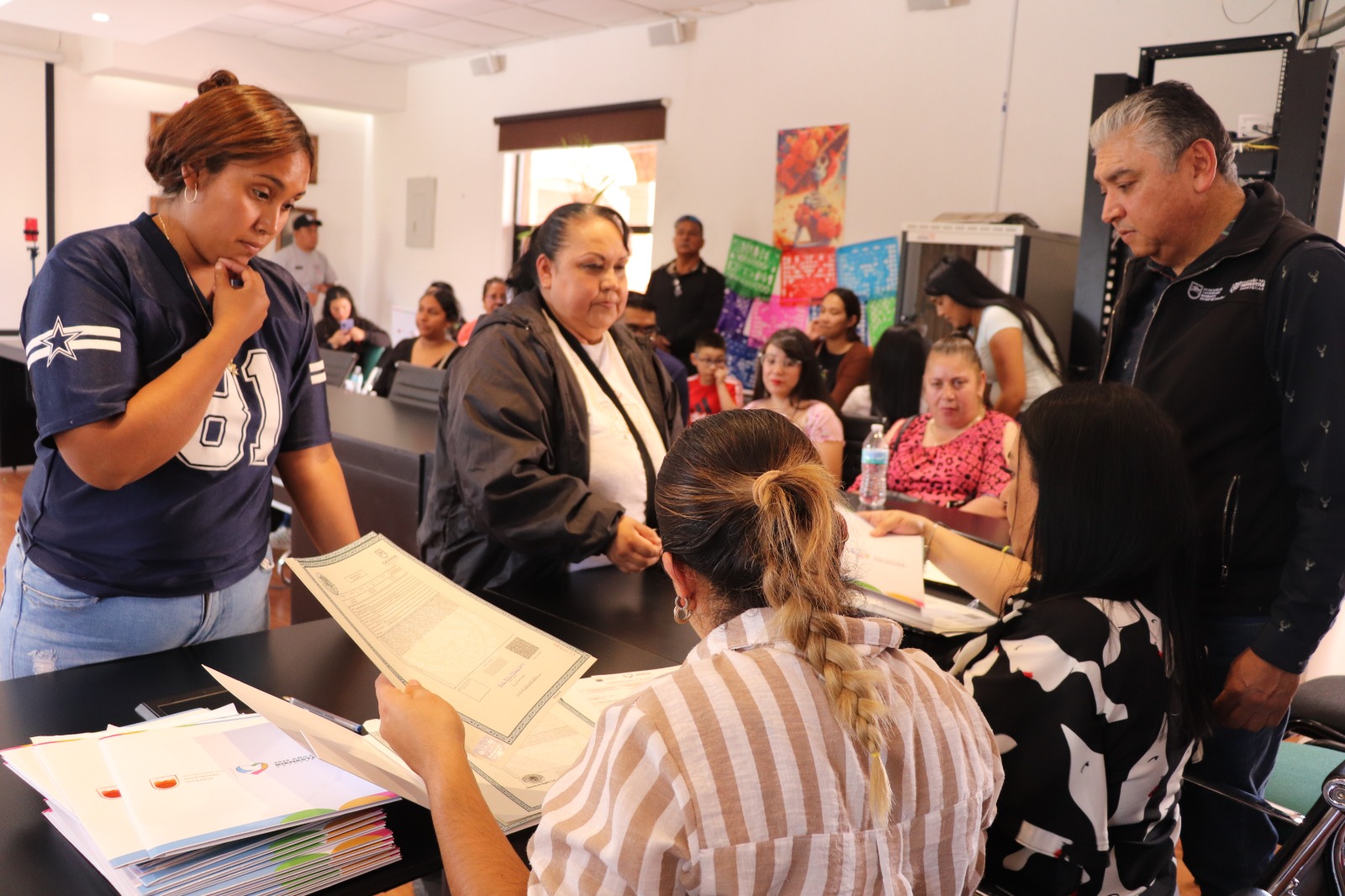 En este municipio se hizo la entrega simbólica de 21 de los 66 documentos, como parte de la política pública del Gobierno estatal, de atención al zacatecano migrante y sus familias, que tramitaron gratuitamente para niños y niñas nacidos en Texas, Oklahoma, Wisconsin, California, Norte de Carolina, Colorado, Illinois y Venada, en Estados Unidos (EEUU).