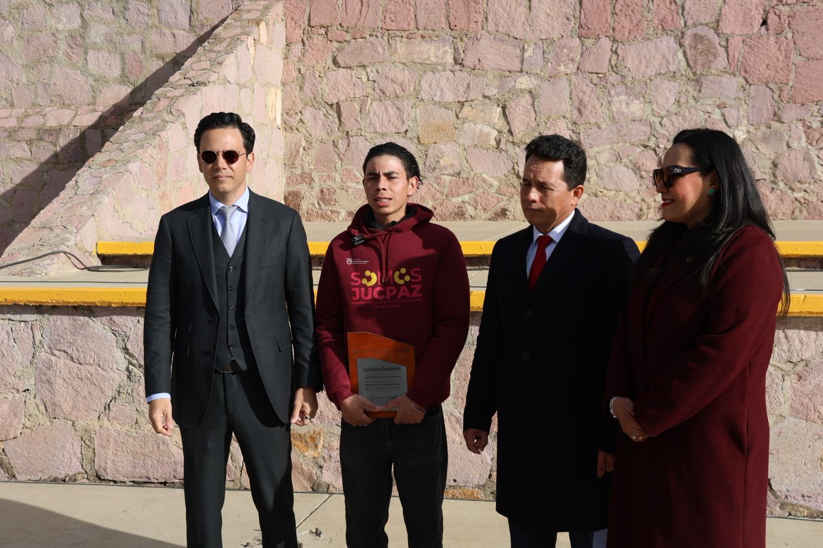 Zacatecas, Zac., 26 de enero de 2026.- Juan Pablo de Loera es el primer joven en graduarse del programa Reconecta con la Paz, impulsado por la Presidenta Claudia Sheinbaum Pardo y el Gobernador David Monreal Ávila, a través del cual, las juventudes en conflicto con la ley tienen la posibilidad de acceder a una adecuada reinserción social, educativa y comunitaria.