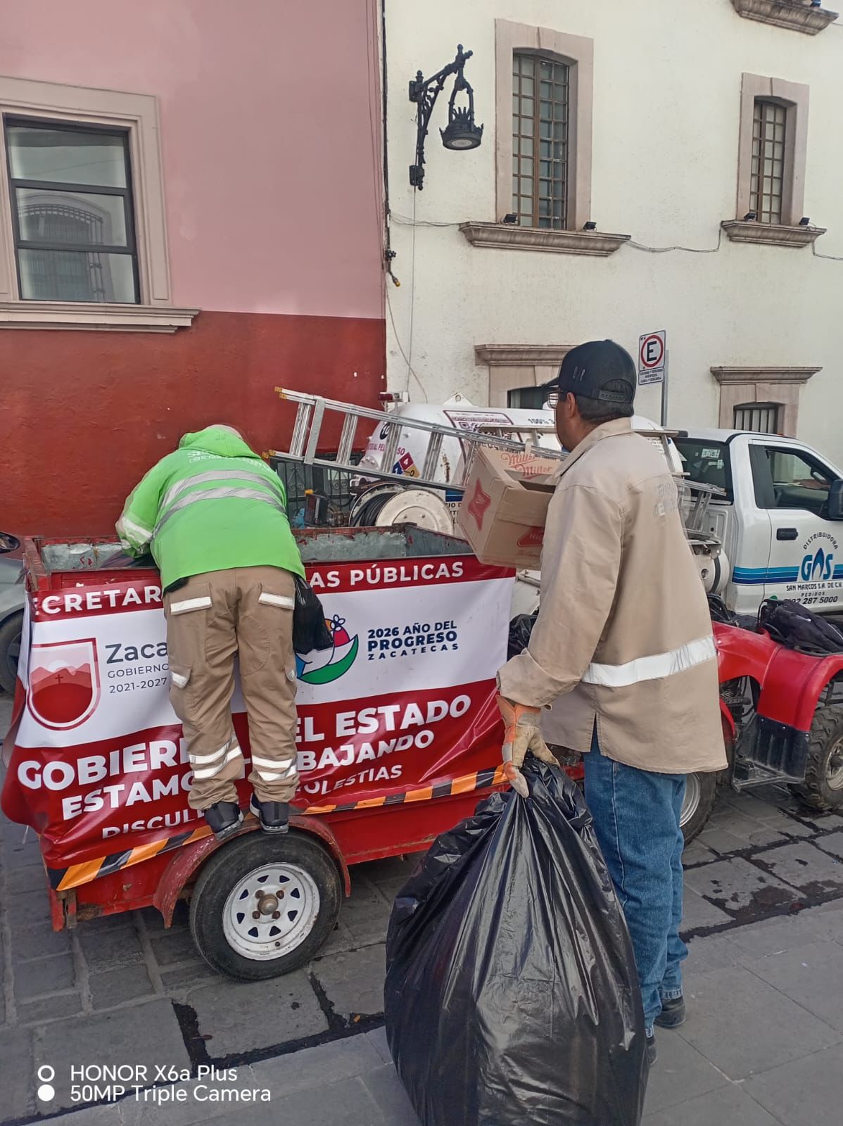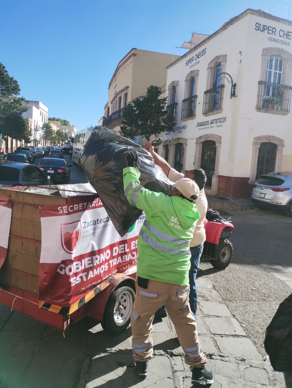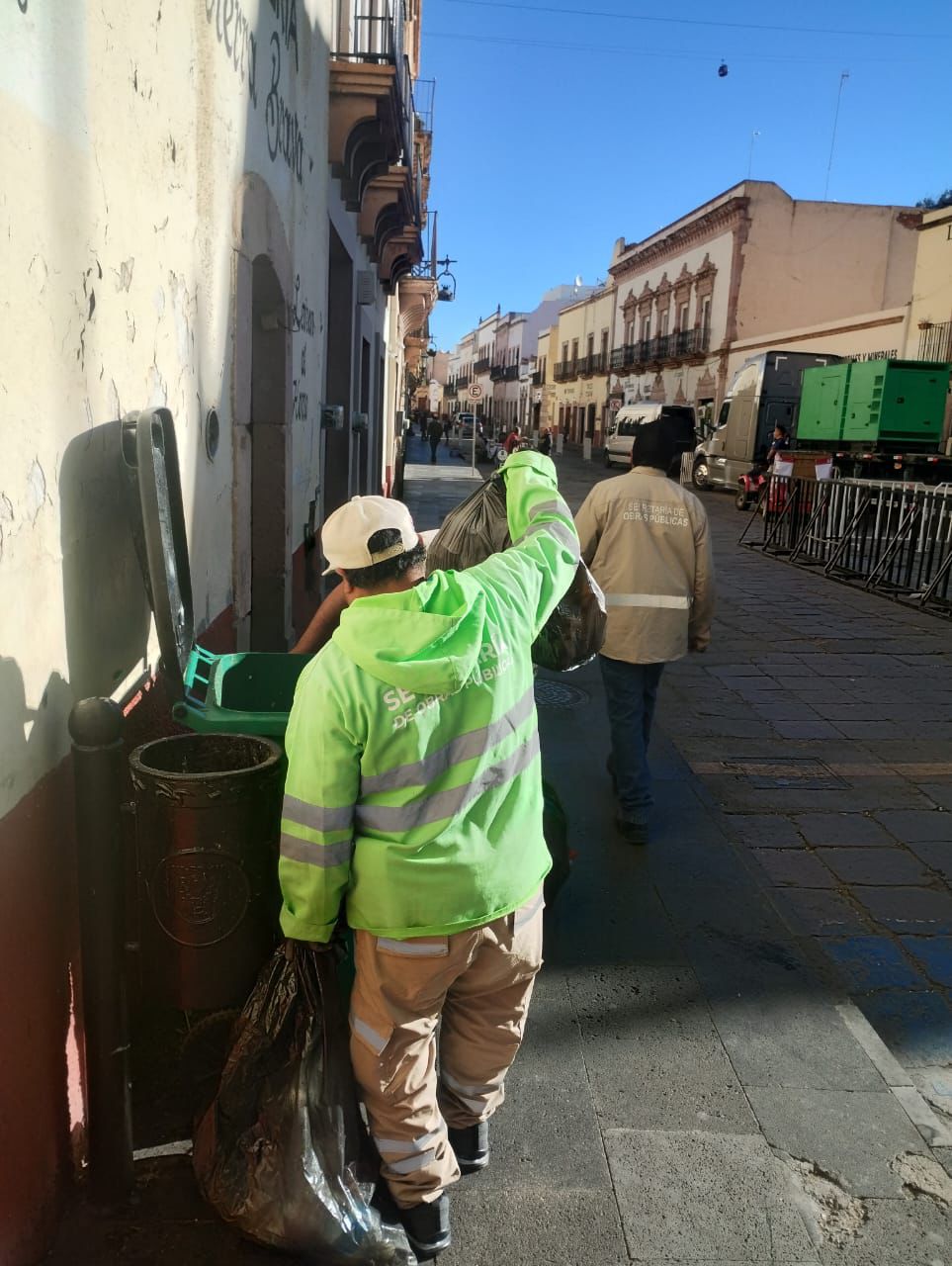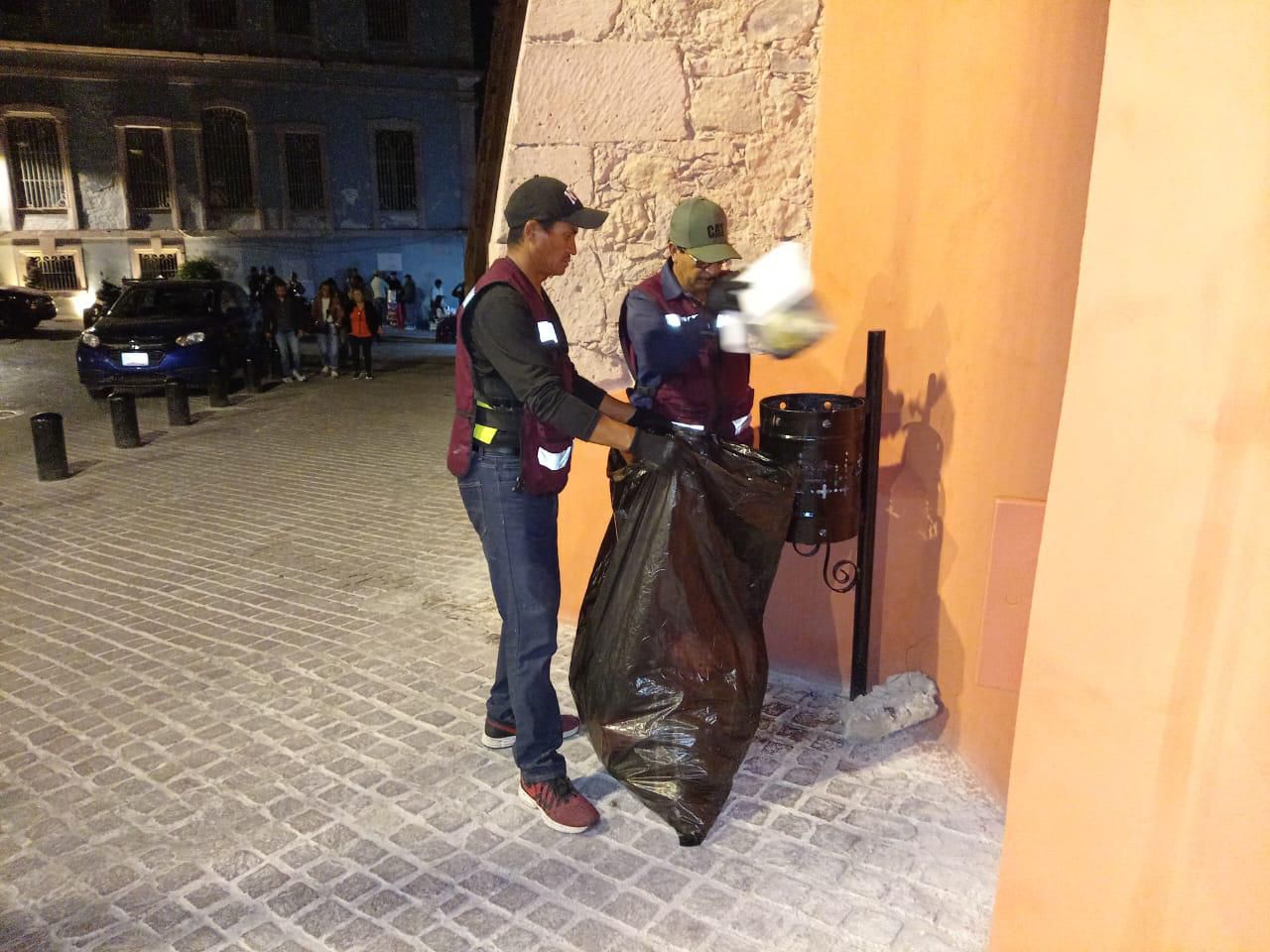 En cumplimiento a las indicaciones del Gobernador David Monreal Ávila, las brigadas realizan labores de recolección de basura, barrido y mantenimiento en cada rincón de la ciudad, con lo que logran que Zacatecas brille y se consolide como un referente cultural y turístico.