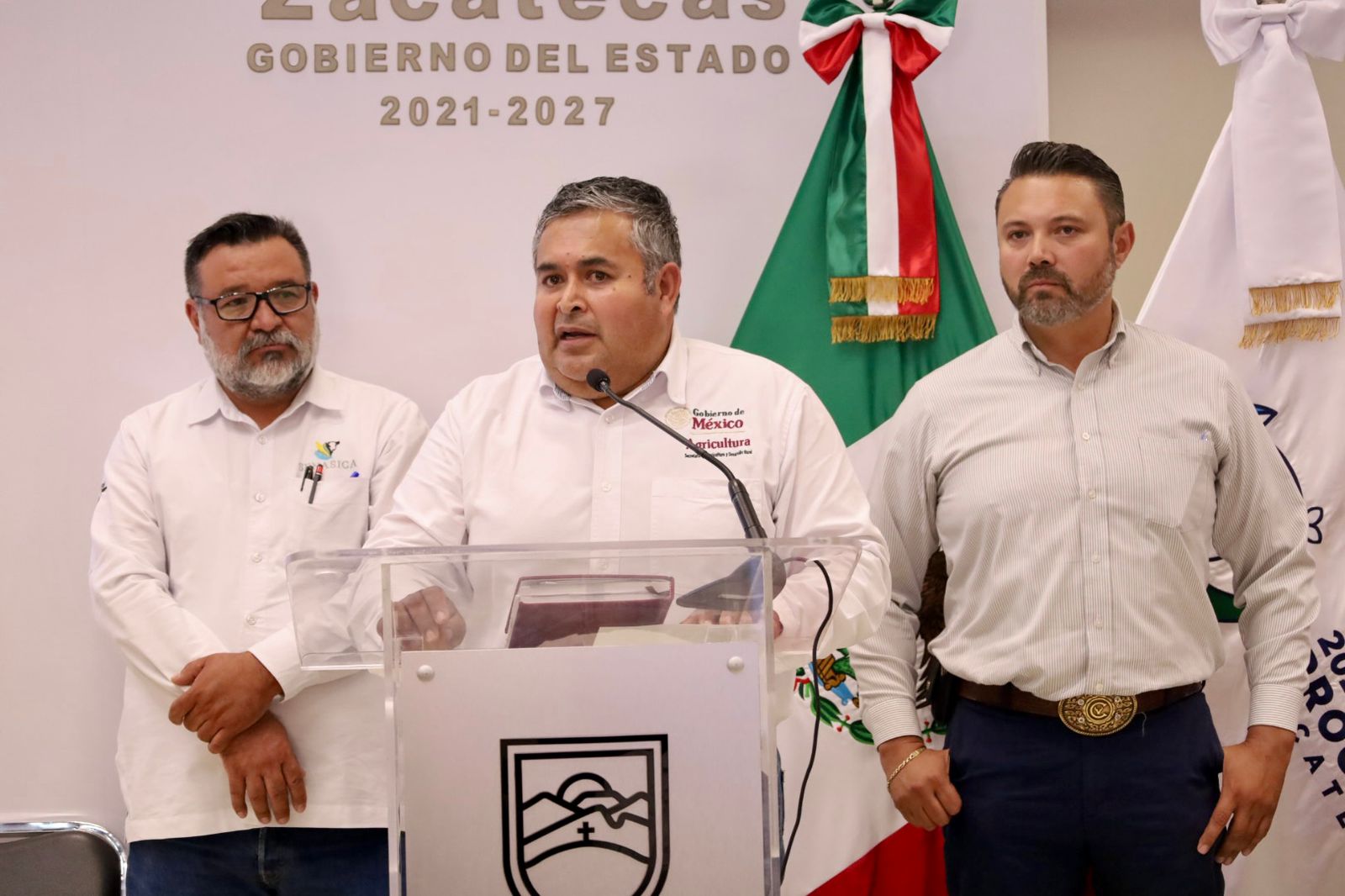 Lo anterior, lo dio a conocer en presencia de Juan Antonio Rangel Trujillo, titular de la Oficina de Representación de la Secretaría de Agricultura y Desarrollo Rural (Sader) en Zacatecas; Uswaldo Pinedo Barrios, secretario de Salud del Gobierno del Estado; y Miguel Contreras Santos, presidente de la Unión Ganadera Regional de Zacatecas (UGRZ).
