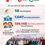 - Se han atendido 58 municipios, visitado 1 mil 047 escuelas primarias públicas y beneficiado directamente a 139 mil 148 alumnas y alumnos