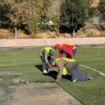 La obra contempla la intervención de 7 mil 700 metros cuadrados, que incluyen el retiro del pasto sintético dañado y la colocación de nuevo pasto certificado y cosido a mano, que garantiza calidad, resistencia y durabilidad para las actividades deportivas.