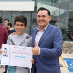 Al hacer entrega de los cheques simbólicos, a nombre del Gobernador David Monreal Ávila, Hamurabi Gamboa Rosales felicitó a los estudiantes y les deseó éxito en sus próximas competencias, a la vez que los exhortó a seguirse preparando para poner su conocimiento al servicio de la sociedad zacatecana.