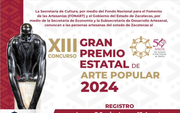 Lanza Gobierno de Zacatecas convocatoria para participar en el XIII Concurso Gran Premio Estatal de Arte Popular 2024 Se otorgarán 56 premios,