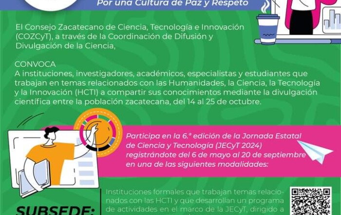 Abre Cozcyt Convocatoria para la 6ª Jornada Estatal de Ciencia y Tecnología 2024 Hasta el 20 de septiembre, podrán registrarse quienes estén