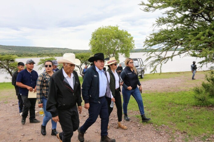 Supervisa Gobernador David Monreal Presa Santiago, en Miguel Auza, y anuncia proyecto de entubamiento del agua En conjunto con productores y miembros del