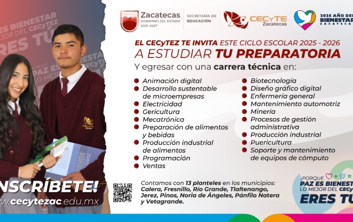 Invita Cecytez a estudiar el bachillerato en la mejor opción de Educación Media Superior Se trata de un Subsistema de Educación Media