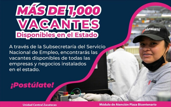 Oferta Gobierno de Zacatecas más de 1 mil vacantes laborales disponibles