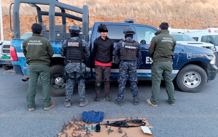 Capturan Fuerzas de Seguridad a hombre armado en Villanueva; portaba droga, artefacto explosivo y estrellas ponchallantas