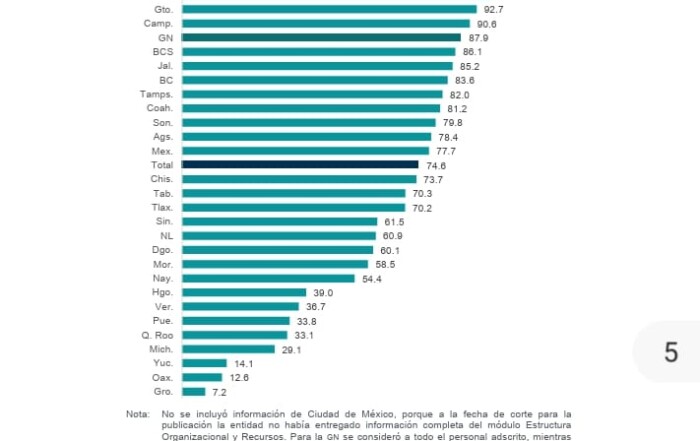 Reporta Zacatecas primer lugar nacional en evaluación de control y confianza Zacatecas ocupa el lugar 9 nacional en densidad policial estatal, con