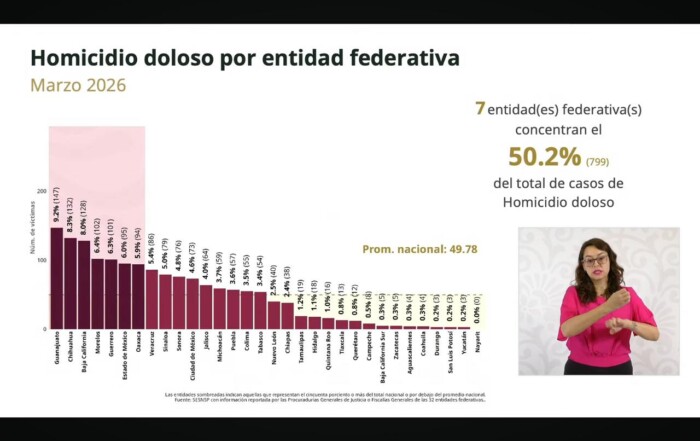 Registra Zacatecas reducción del 89 por ciento en homicidios dolosos; es 2026 primer trimestre con menos delitos desde 2015 Promedio diario de