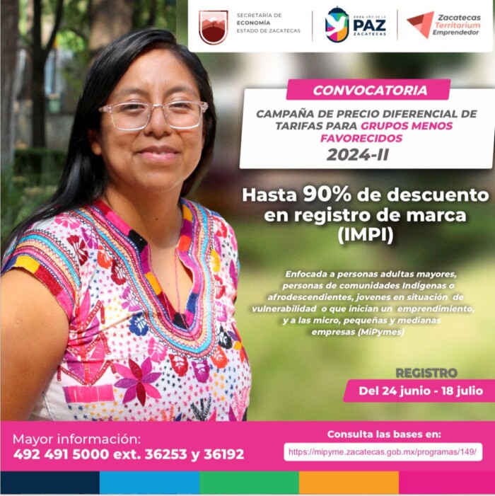 Otorgará Gobierno de Zacatecas 90% de descuento en registro de marca ante el IMPI Esta campaña es dirigida a nuevas micro, pequeñas
