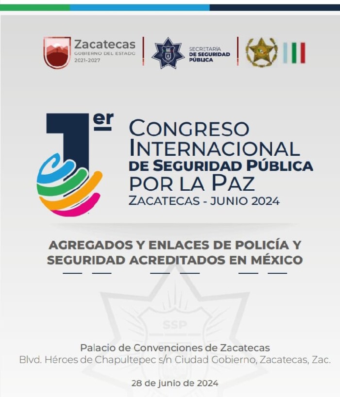 Por consolidación de la paz, participarán expertos de distintos países en 1er Congreso Internacional de Seguridad Pública en Zacatecas Este encuentro tendrá lugar