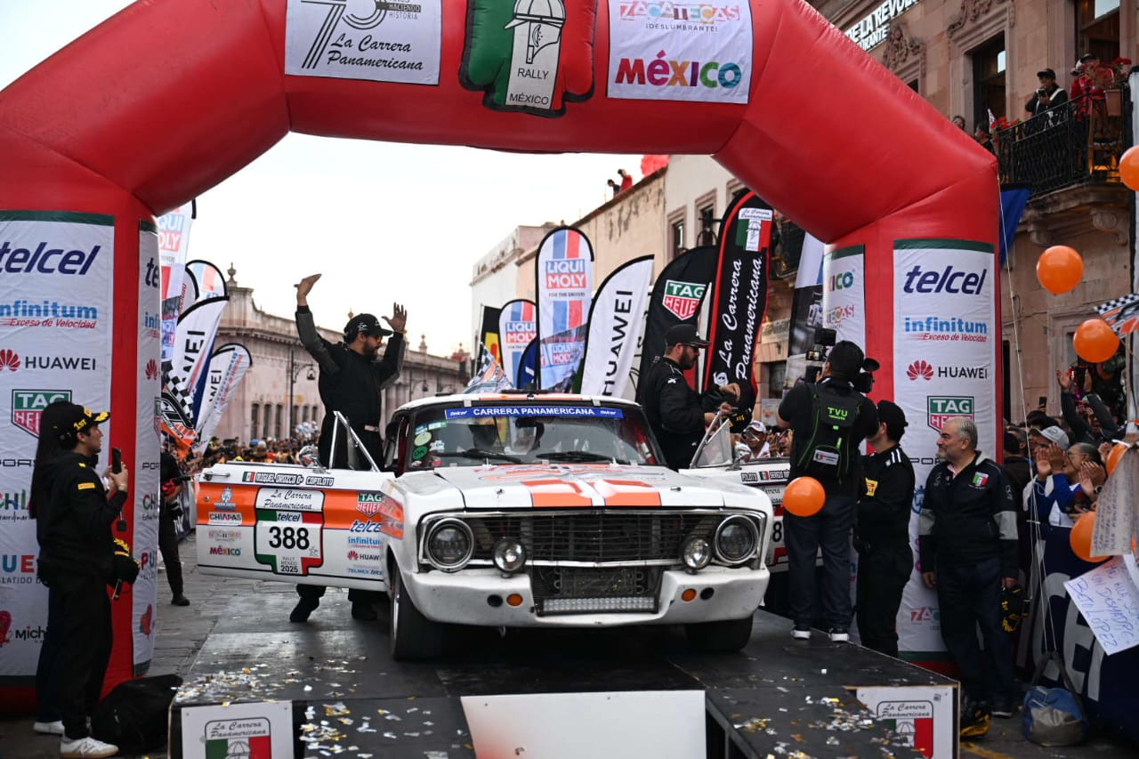 Zacatecas, Zac., 16 de octubre de 2025.- En un escenario inmejorable, al pie del cerro de La Bufa y ante miles de fanáticos del automovilismo clásico y el rally que abarrotaron las calles del Centro Histórico, el potosino Ricardo Cordero triunfó e igualó el récord histórico, con siete títulos, de la Carrera Panamericana, que, en su 75 aniversario, culminó con gran éxito en Zacatecas.
