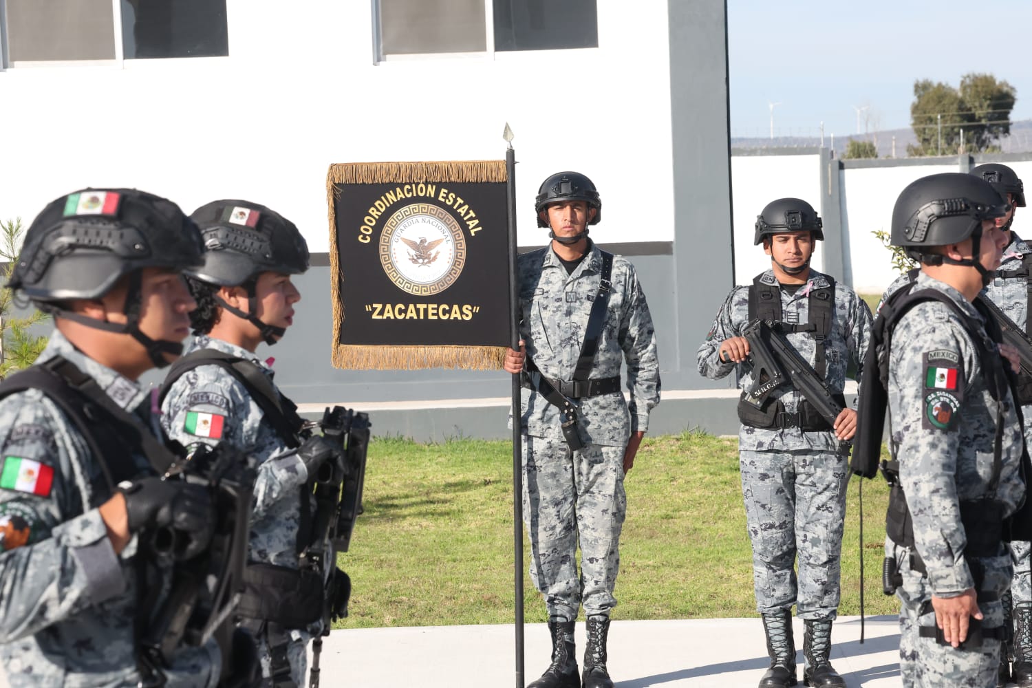 Desde las instalaciones de la 176 Compañía de la Guardia Nacional, ubicadas en San Jerónimo, Guadalupe, acompañado por Vicente Dimayuga Canales, coordinador estatal de la Guardia Nacional; Isaac Bravo López, comandante de la Decimoprimera Zona Militar; y Arturo Medina Mayoral, secretario de Seguridad Pública, el mandatario reconoció el trabajo coordinado entre las corporaciones, que ha permitido revertir las tendencias delictivas y fortalecer la paz en la entidad.
