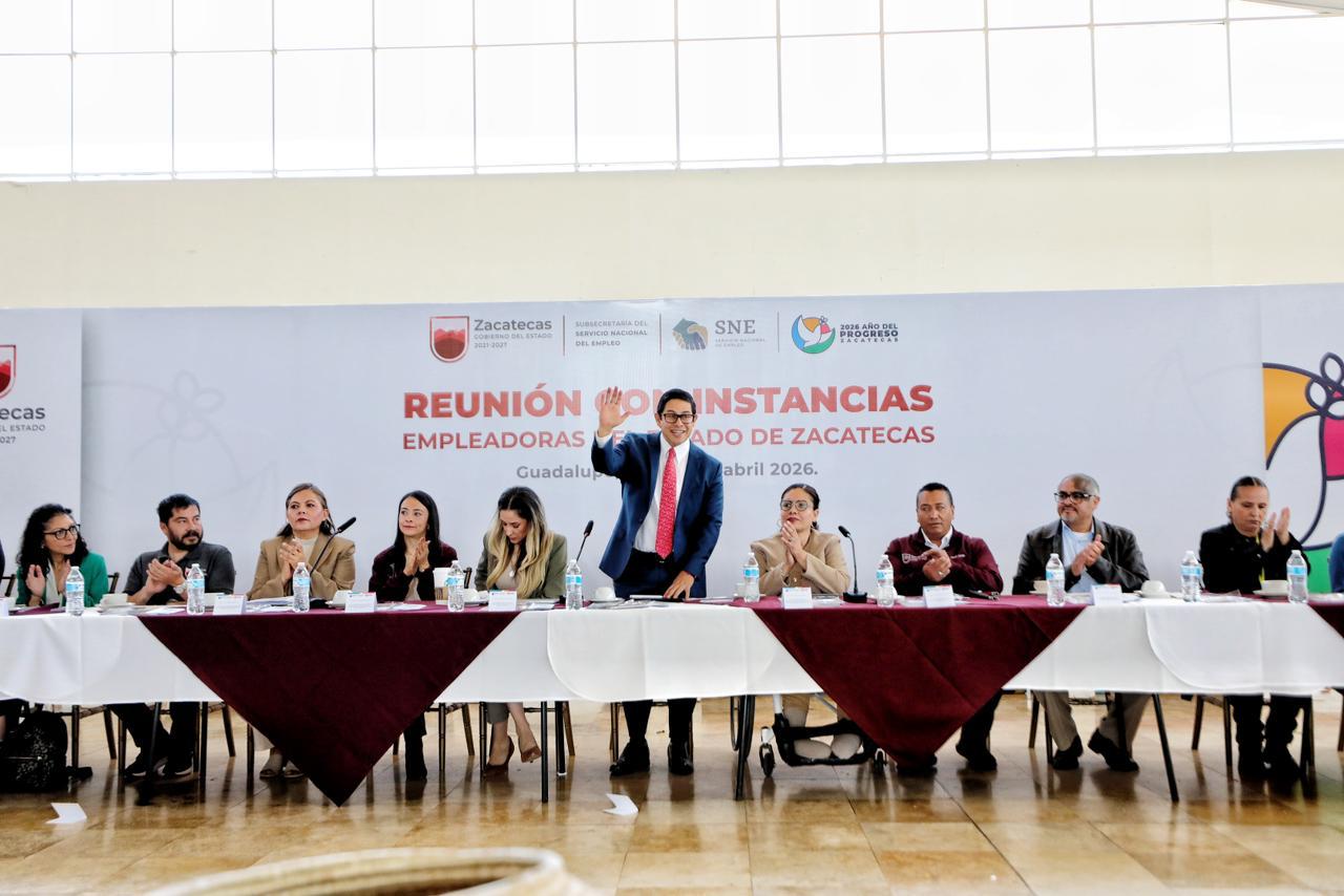 Guadalupe, Zac., 21 de abril de 2026.- En el marco de la Agenda del Progreso, que impulsa el Gobernador David Monreal Ávila, la administración estatal, a través de la Secretaría de Economía (Sezac) y la Subsecretaría del Servicio Nacional de Empleo (SNE), llevó a cabo una reunión de trabajo con más de 100 empresas establecidas en la zona conurbada, con el objetivo de fortalecer la vinculación laboral, optimizar los procesos de contratación y ampliar las oportunidades de empleo para las y los zacatecanos.