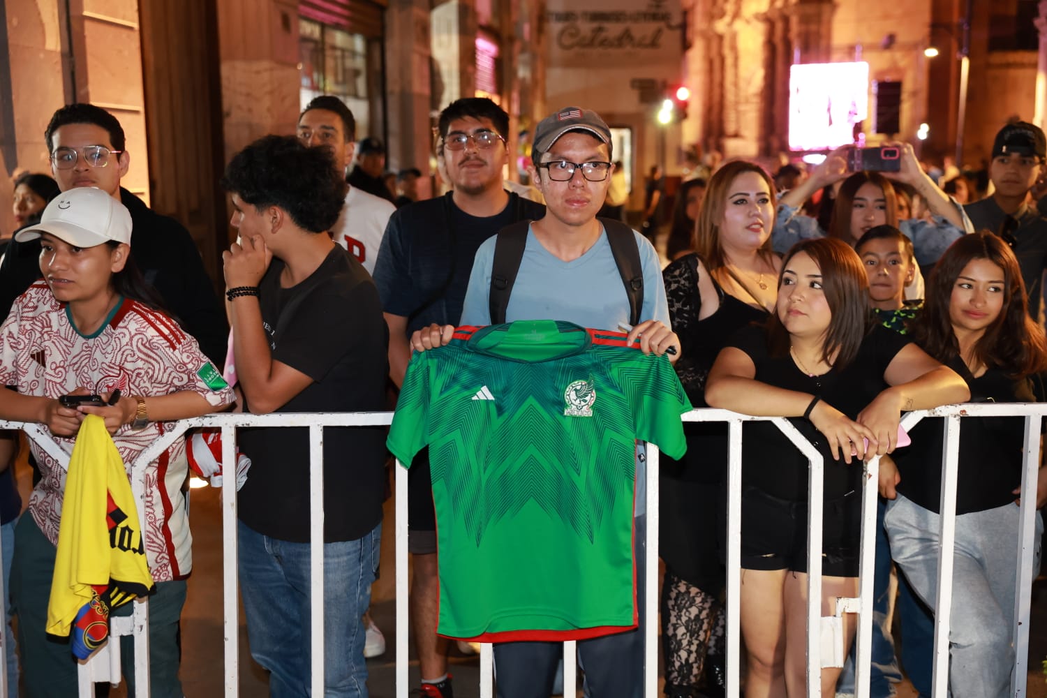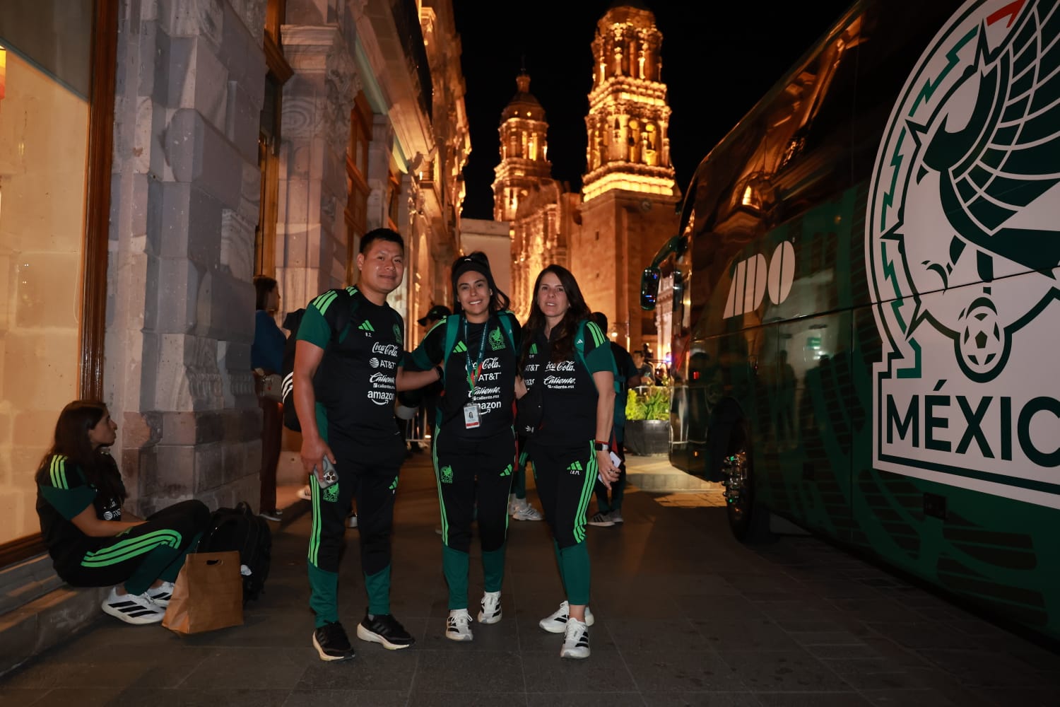 Luego, en el Centro Histórico capitalino y en el marco del Festival Cultural Zacatecas 2026, la escuadra azteca tuvo un grato recibimiento por parte de la afición de Zacatecas que se concentró afuera del hotel sede, en la avenida Hidalgo.